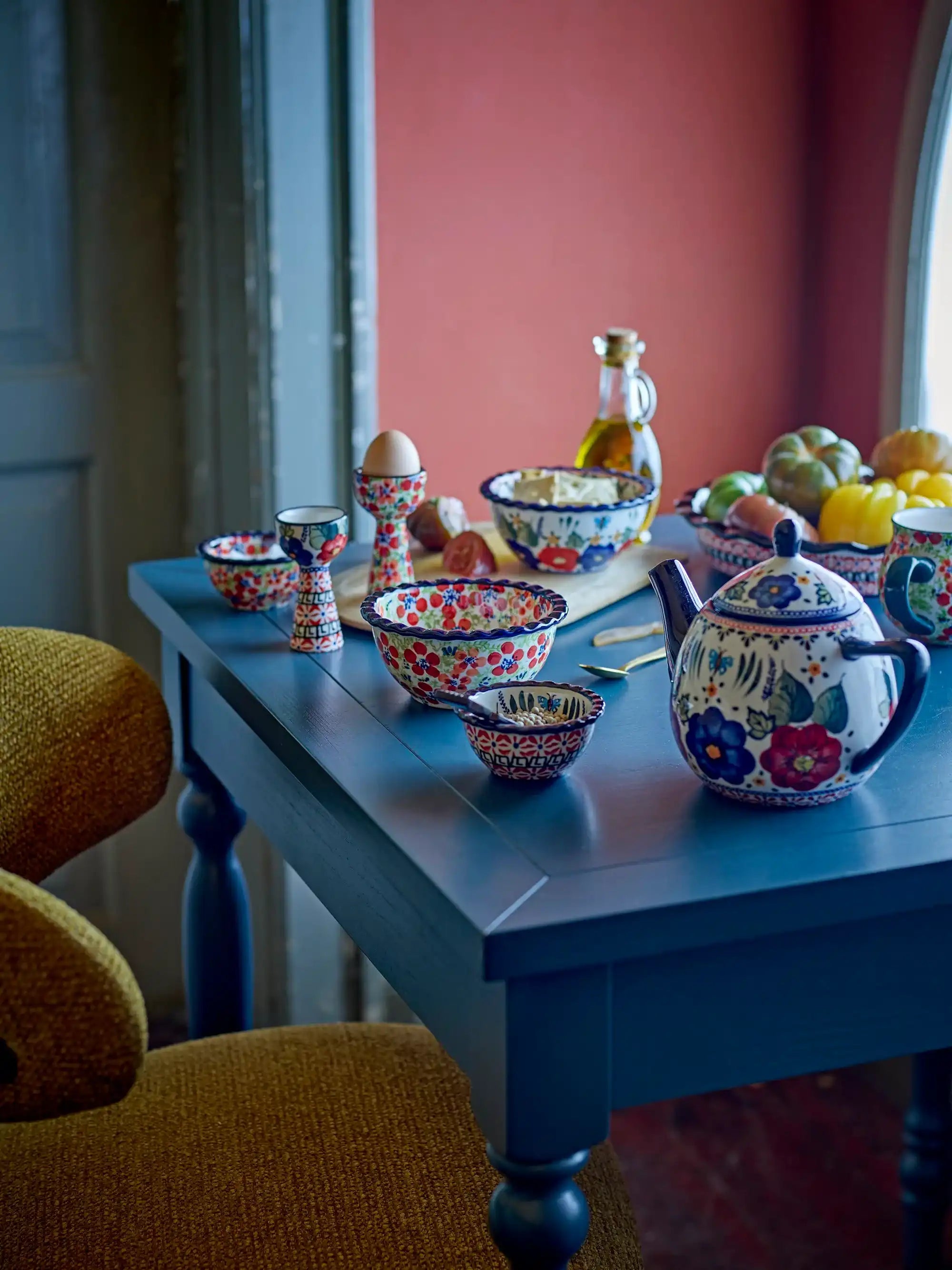 Dettagli & materiale: La ciotola è realizzata in gres e ha un generoso ø 26,5 cm, ideale per insalate, frutta o come centrotavola d’effetto. La combinazione di fiori stampati e dipinti a mano aggiunge profondità al motivo; ogni ciotola presenta quindi sottili differenze nel disegno e nel colore—proprio il fascino dell’artigianato. Il colore rosso crea una base giocosa per il motivo floreale multicolore e si abbina perfettamente allo stile scandinavo della Creative Collection di Bloomingville.