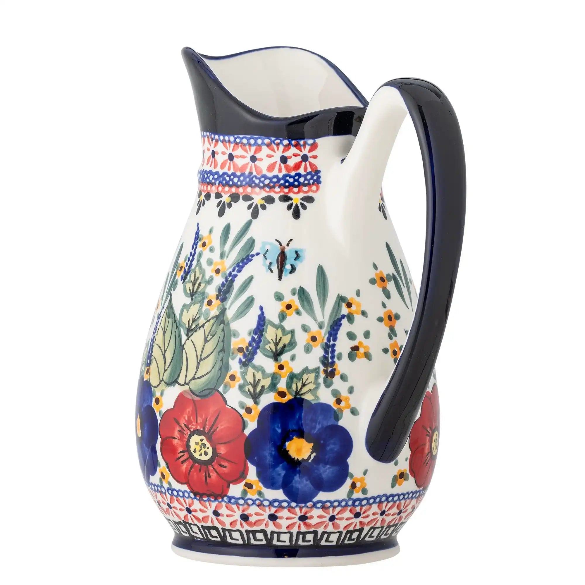 Perché vuoi avere la brocca di Bloomingville: C’è poco di zo uitnodigend als kleur op tafel. La brocca Florist di Bloomingville è decorata generosamente con un vivace motivo floreale in blu, rosso, giallo e verde, mentre il manico, il bordo e la base contrastano in un nero profondo. Il risultato è un pezzo d’atmosfera che funziona altrettanto bene come decorazione. Mettila in tavola durante un brunch o un aperitivo, oppure dona un tocco allegro alla tua credenza aperta. Preferisci usarla come vaso? Allora la brocca regalerà un look rilassato e disinvolto.
