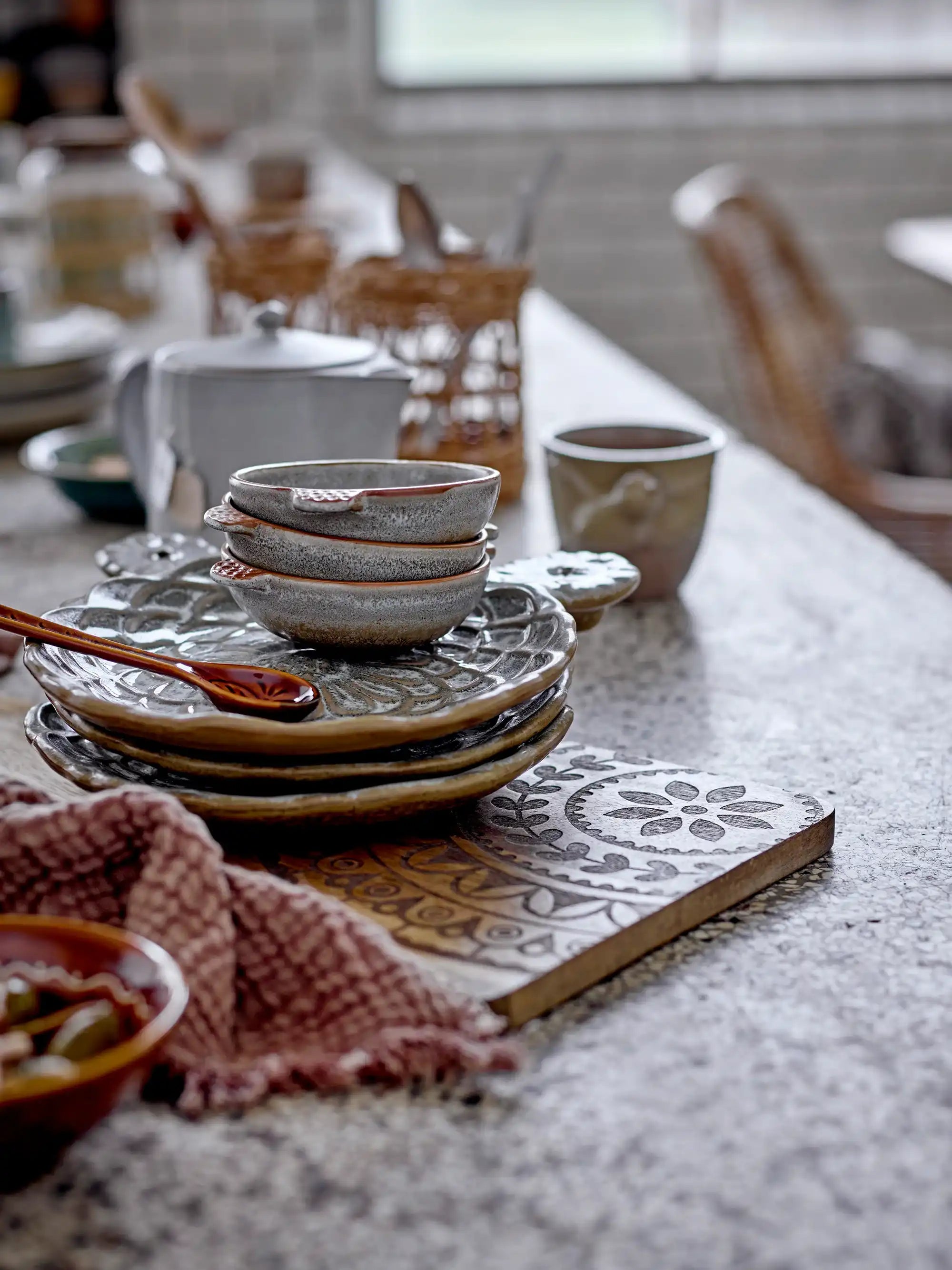Perché vorrai avere questo vassoio da portata: Porta i tuoi momenti di aperitivo a un livello superiore con questo splendido vassoio che aggiunge subito atmosfera alla tua tavola. Il motivo in rilievo unico dona un tocco caldo e artigianale, perfetto per un arredamento scandinavo.