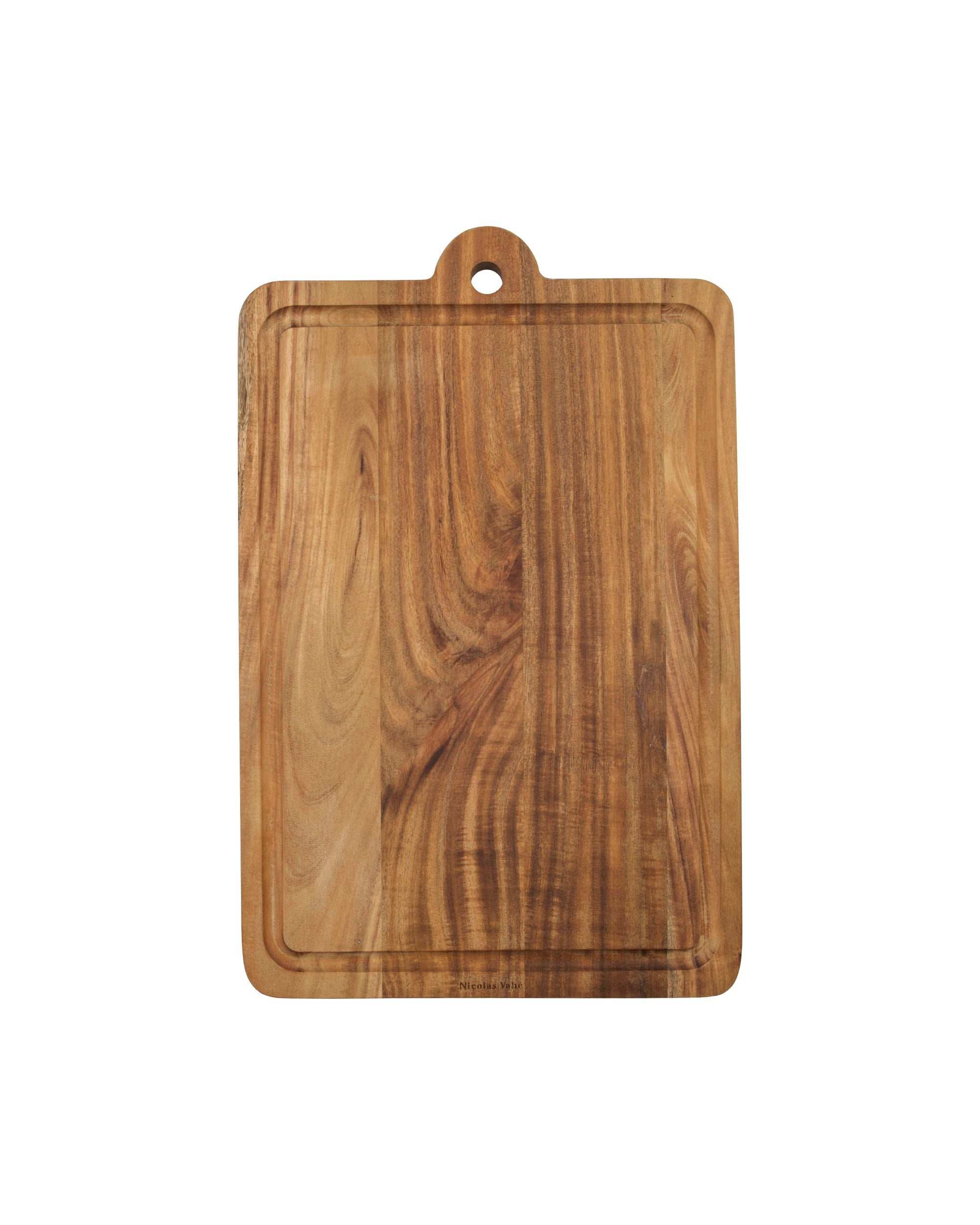 Con una dimensione di 28 x 43 cm e uno spessore di 1,8 cm, questo tagliere offre un'ampia superficie di lavoro. Il legno naturale non è solo funzionale, ma aggiunge subito un tocco rustico alla tua cucina o tavola da pranzo.