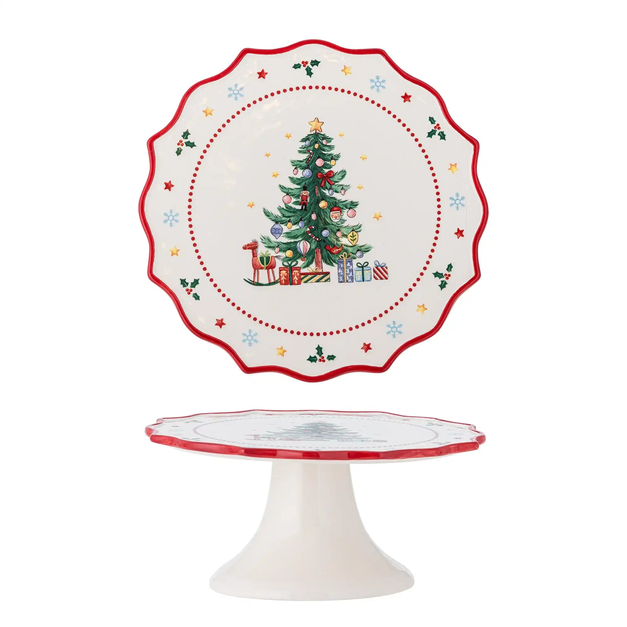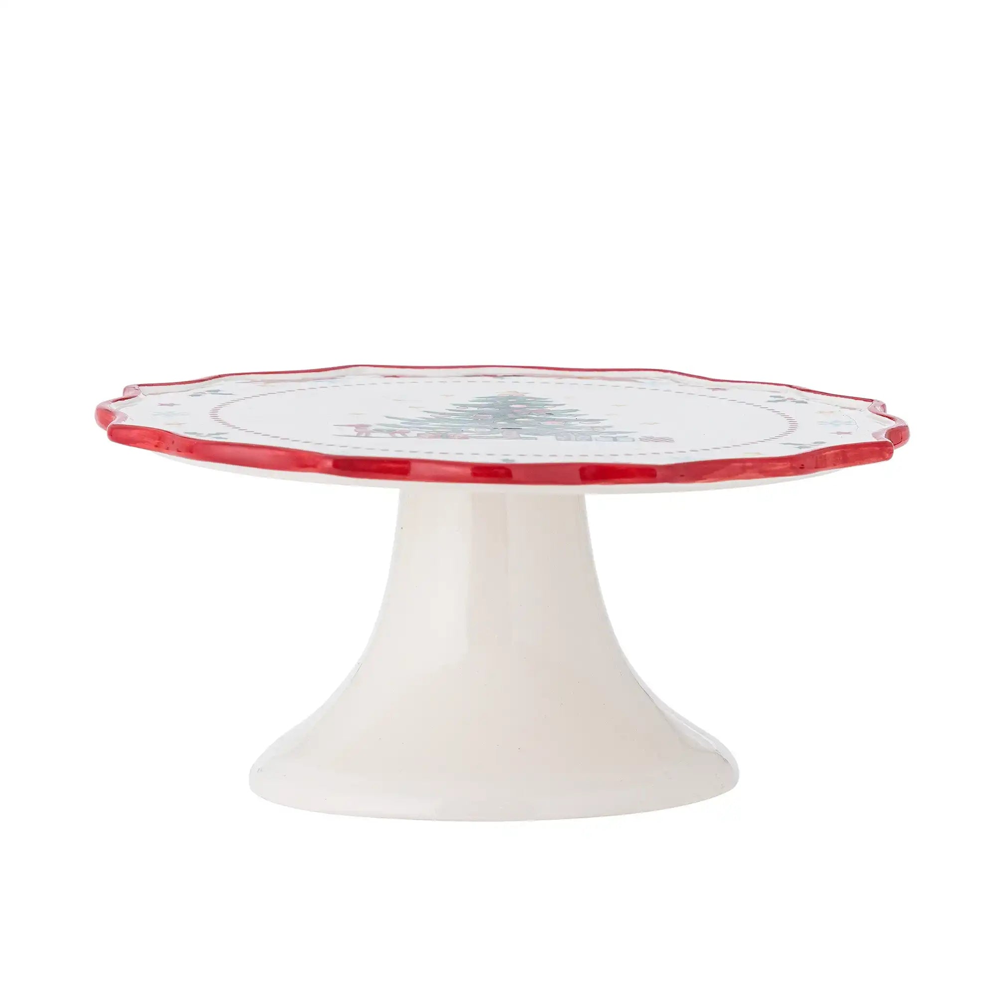 Porta la magia del Natale sulla tua tavola con questa alzata per torte in ceramica della serie Naive di Bloomingville. Il piatto è decorato con un raffinato motivo ad albero di Natale, circondato da dettagli festosi che creano subito un'atmosfera calda. Il bordo rosso dipinto a mano valorizza la forma ondulata e rende ogni pezzo unico: non ne troverai mai due identici. Perfetta per presentare dolci invernali o creazioni festive in modo davvero speciale.