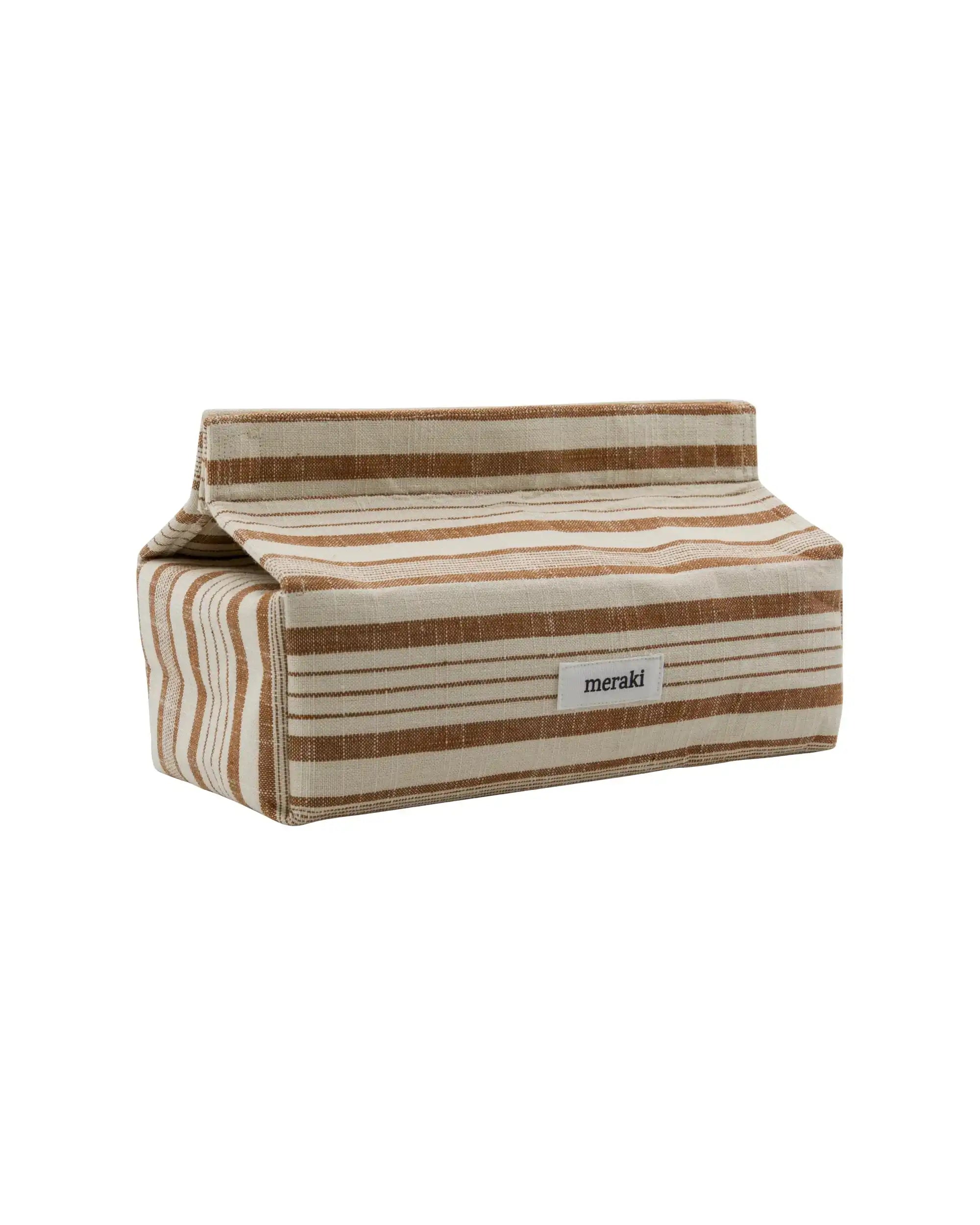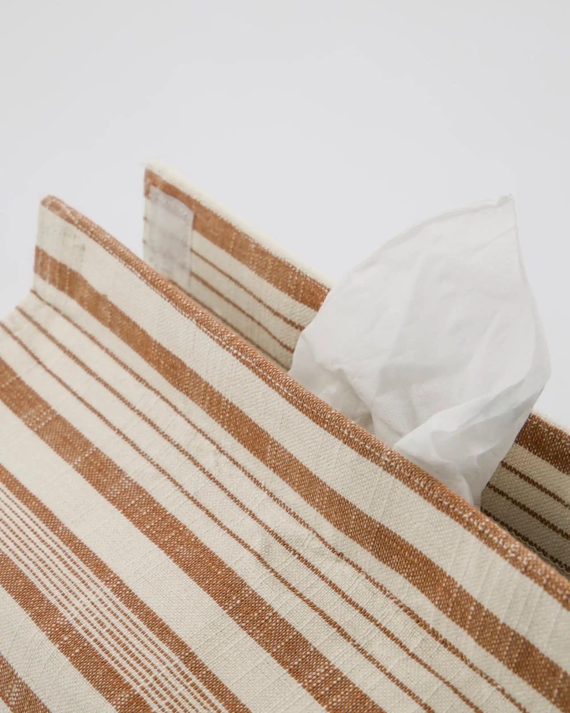 Con il Porta fazzoletti in terracotta aggiungi un tocco caldo e curato ai momenti di ogni giorno. L’abbinamento di tonalità terrose e delicate righe tinte in filo crea un’atmosfera naturale e rilassante. Il design è compatto ma rifinito con cura, e si adatta facilmente a superfici più piccole come il tuo comodino, il lavabo o un tavolino.