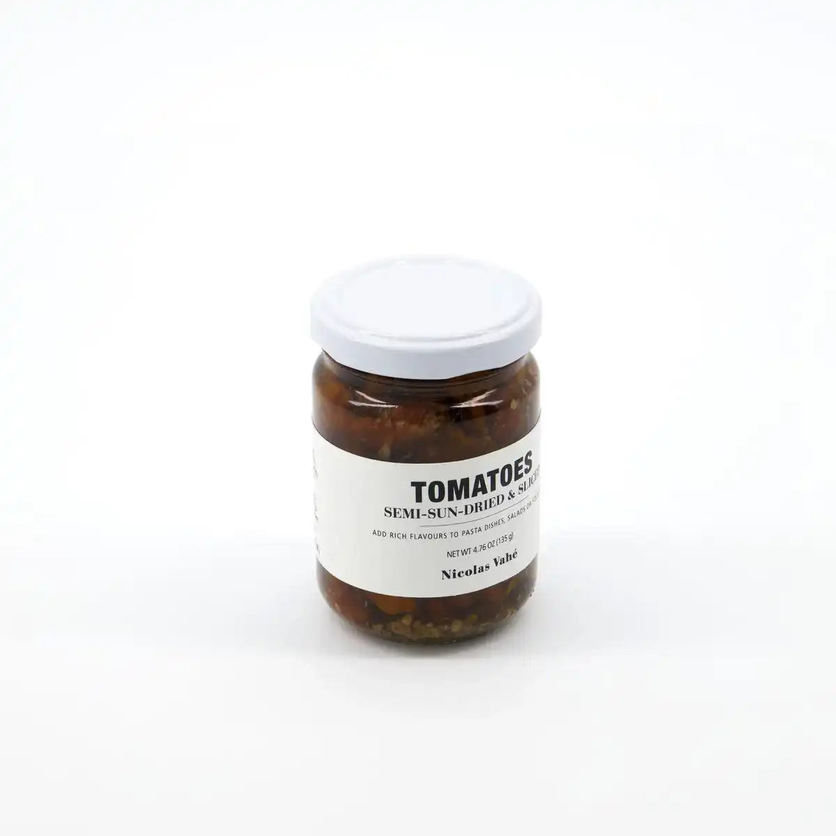 Lasciati sorprendere dall'intensità dei pomodori semi-secchi di Nicolas Vahé. Selezionati con cura e preparati con amore, questi pomodori offrono il perfetto equilibrio tra succosità e concentrazione di sapore. Poiché non sono completamente essiccati, mantengono la loro naturale dolcezza e consistenza carnosa.