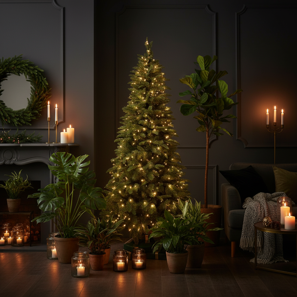 Consiglio decorativo: Abbina l’Uppsala kerstboom a decorazioni in legno e nastri di lino per uno stile natalizio scandinavo e rilassato.