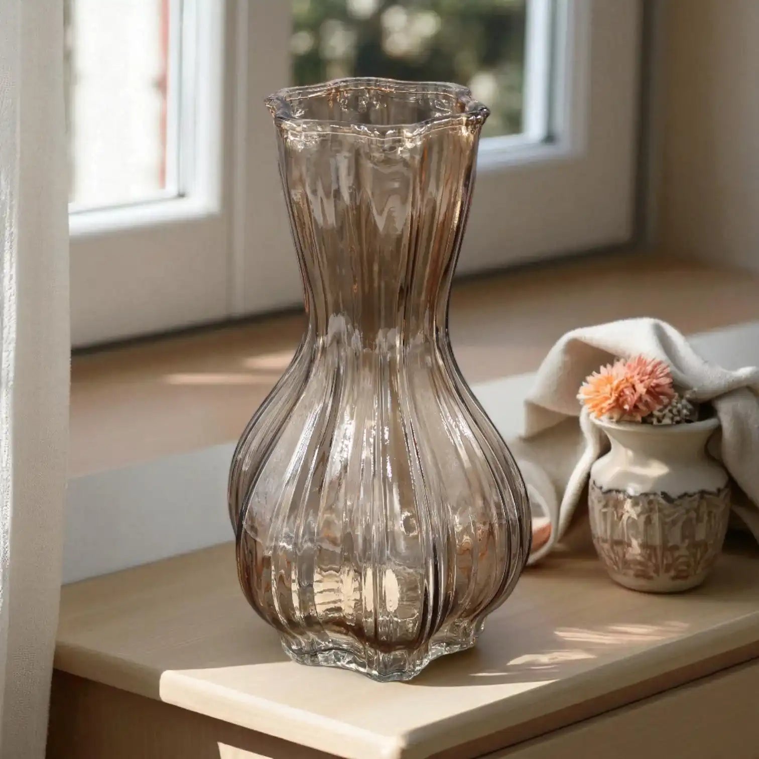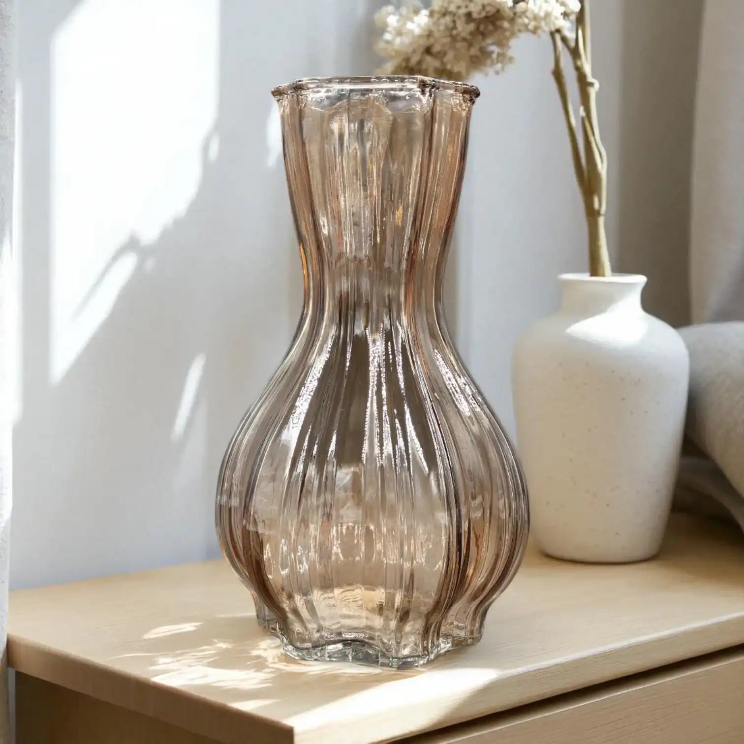 Consiglio decorativo: Abbina il vaso Flin Fion beige a toni della terra e materiali naturali per un’atmosfera armoniosa e rilassante.