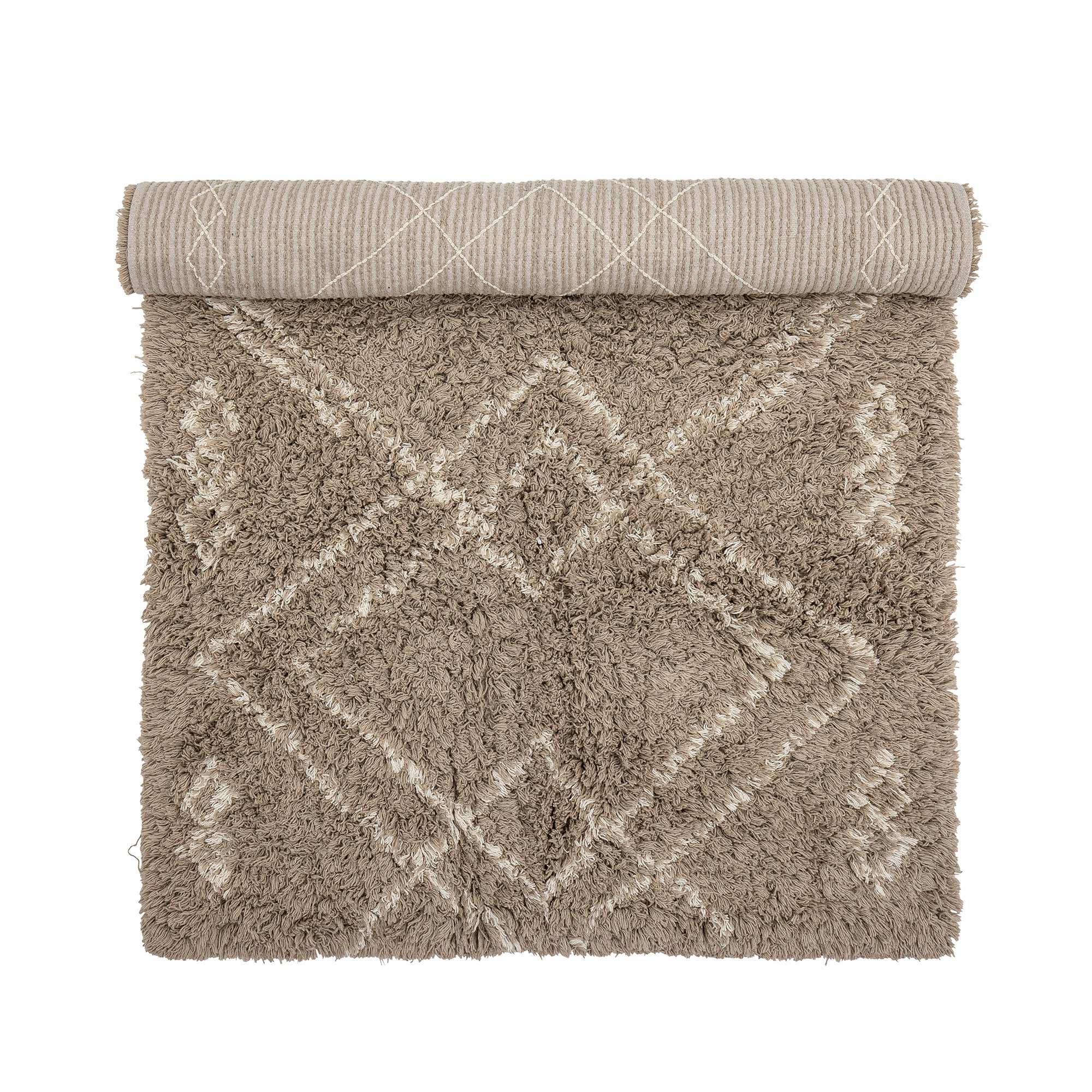Perché vorrai avere questo tappeto: Questo caldo tappeto di Bloomingville porta subito un’atmosfera accogliente nella tua casa. Le tonalità naturali della sabbia e il motivo grafico giocoso rendono ogni ambiente un luogo invitante dove camminare a piedi nudi è un piacere.