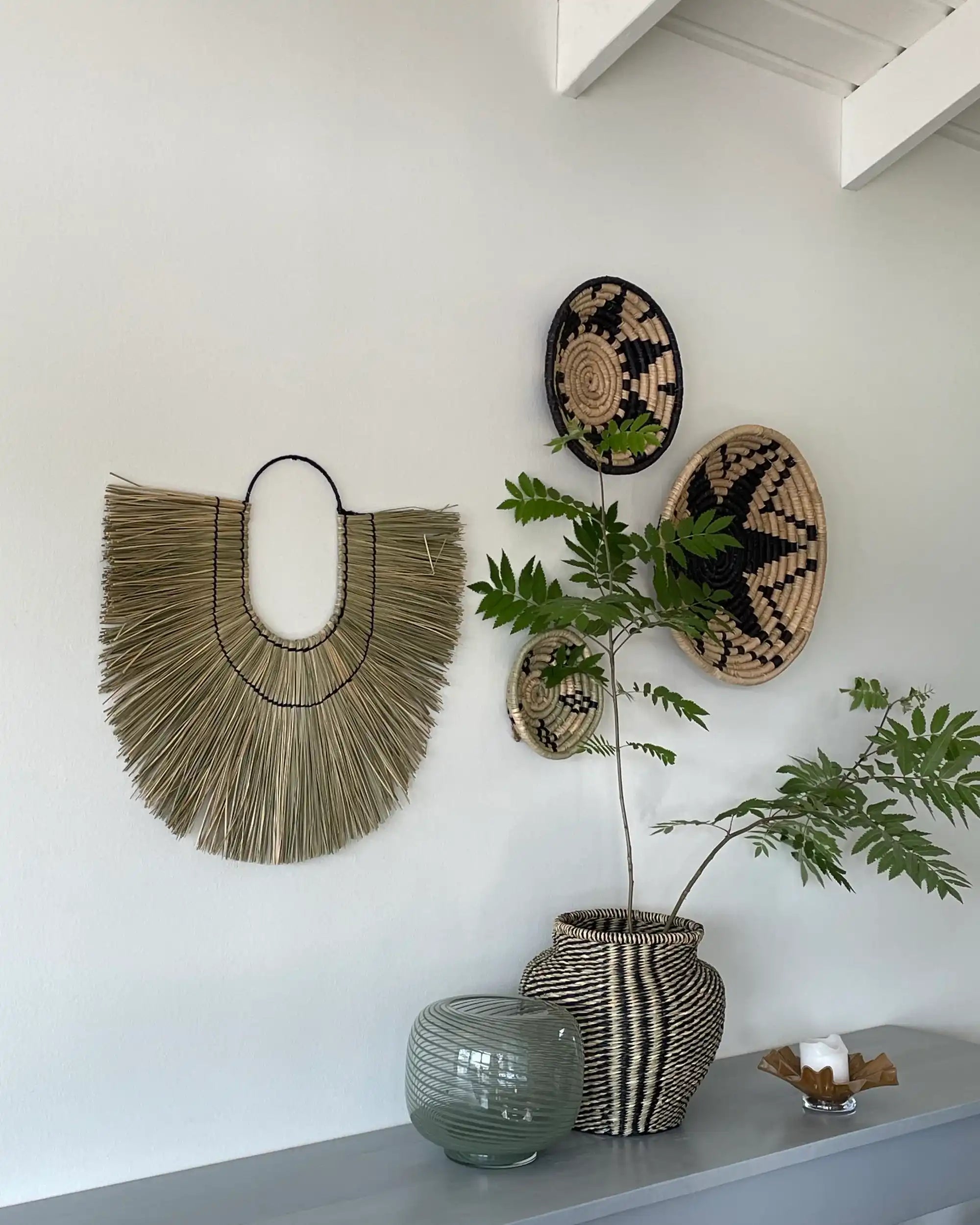 Consiglio d'uso: Appendi Gros da solo come accento sorprendente su una parete chiara, oppure abbinalo a oggetti da parete più piccoli in legno o lino per una parete suggestiva e stratificata.