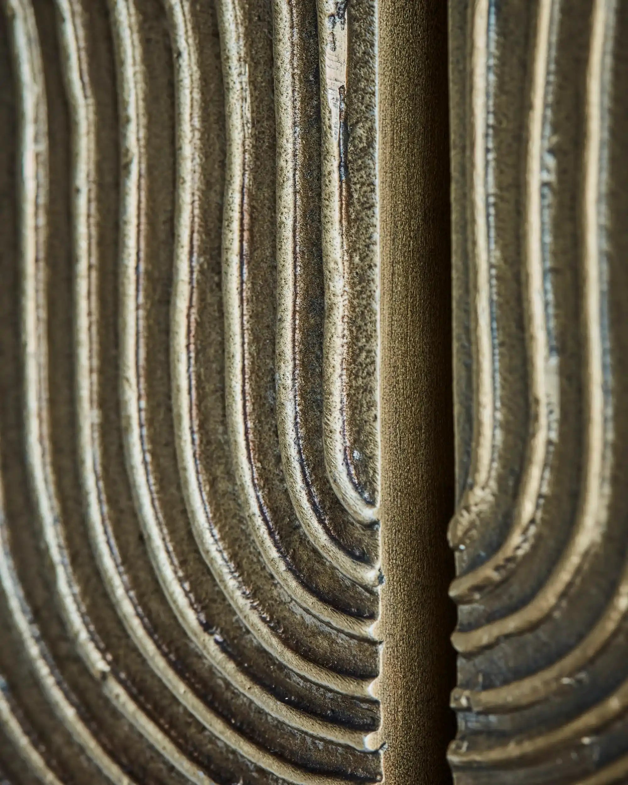 Aggiungi carattere alla tua parete con questa elegante decorazione da parete in bronzo antico. Il rilievo fatto a mano e il caldo colore ottone donano profondità e raffinatezza al tuo interno. Perfetta per chi ama un'atmosfera personale e artistica in casa.