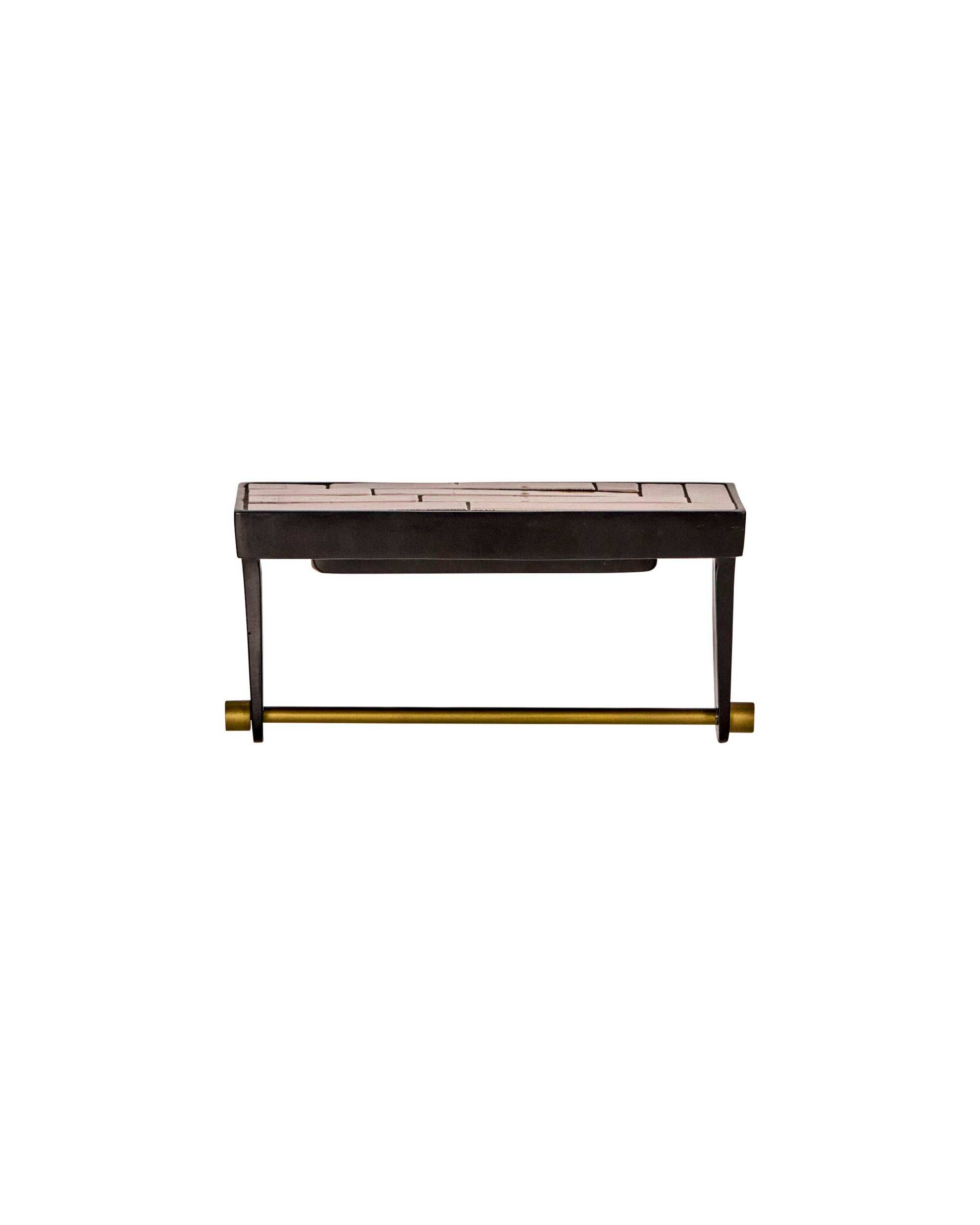 Ciò che rende davvero speciale questa mensola da parete è la combinazione di materiali e finiture. L’asta integrata con finitura ottone anticato non solo aggiunge eleganza visiva, ma è anche pratica: ideale per appendere asciugamani, strofinacci o accessori.