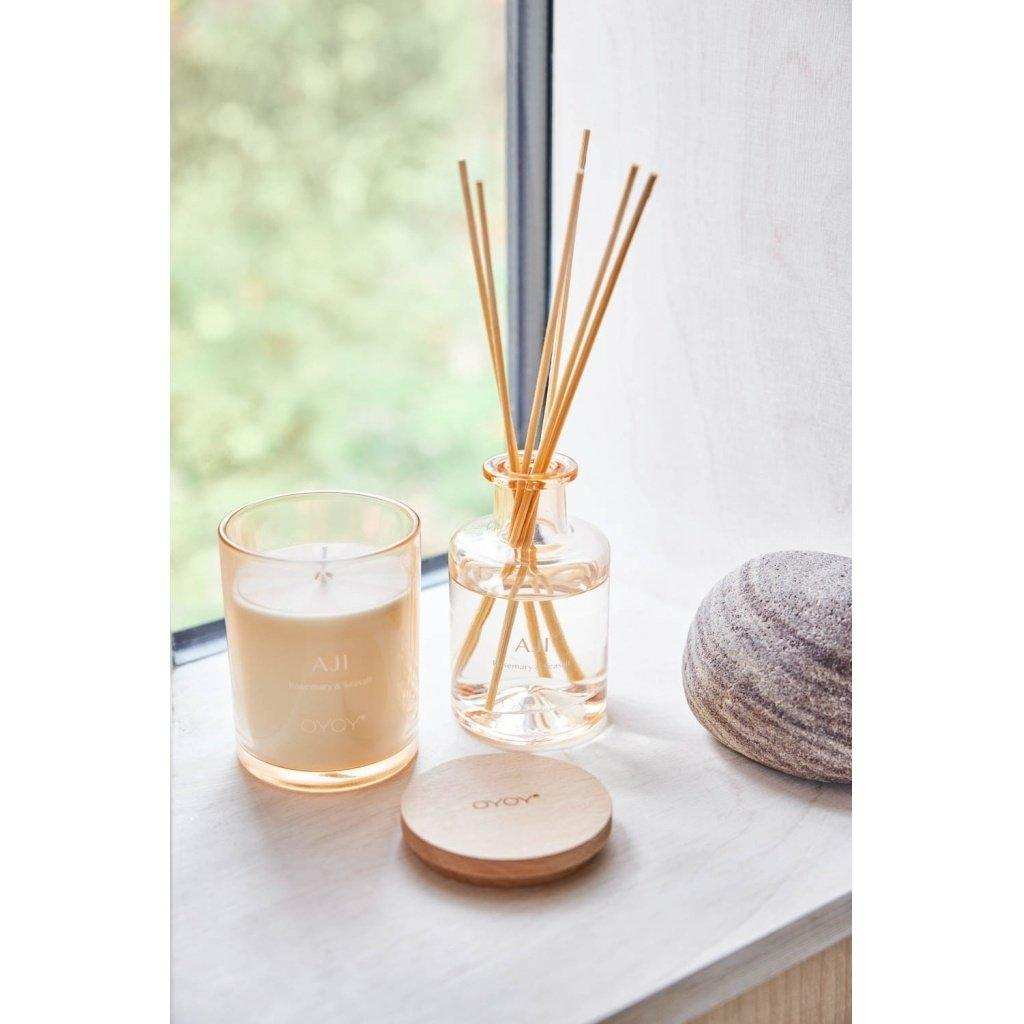 Laat de Aji Geurkaars je zintuigen prikkelen en een ontspannen ambiance creëren. De combinatie van rozemarijn en zeetzout brengt een vleugje frisheid en rustgevendheid in je huis. De geur van rozemarijn werkt verkwikkend en stimulerend, terwijl het zeetzout een gevoel van kalmte en sereniteit toevoegt.