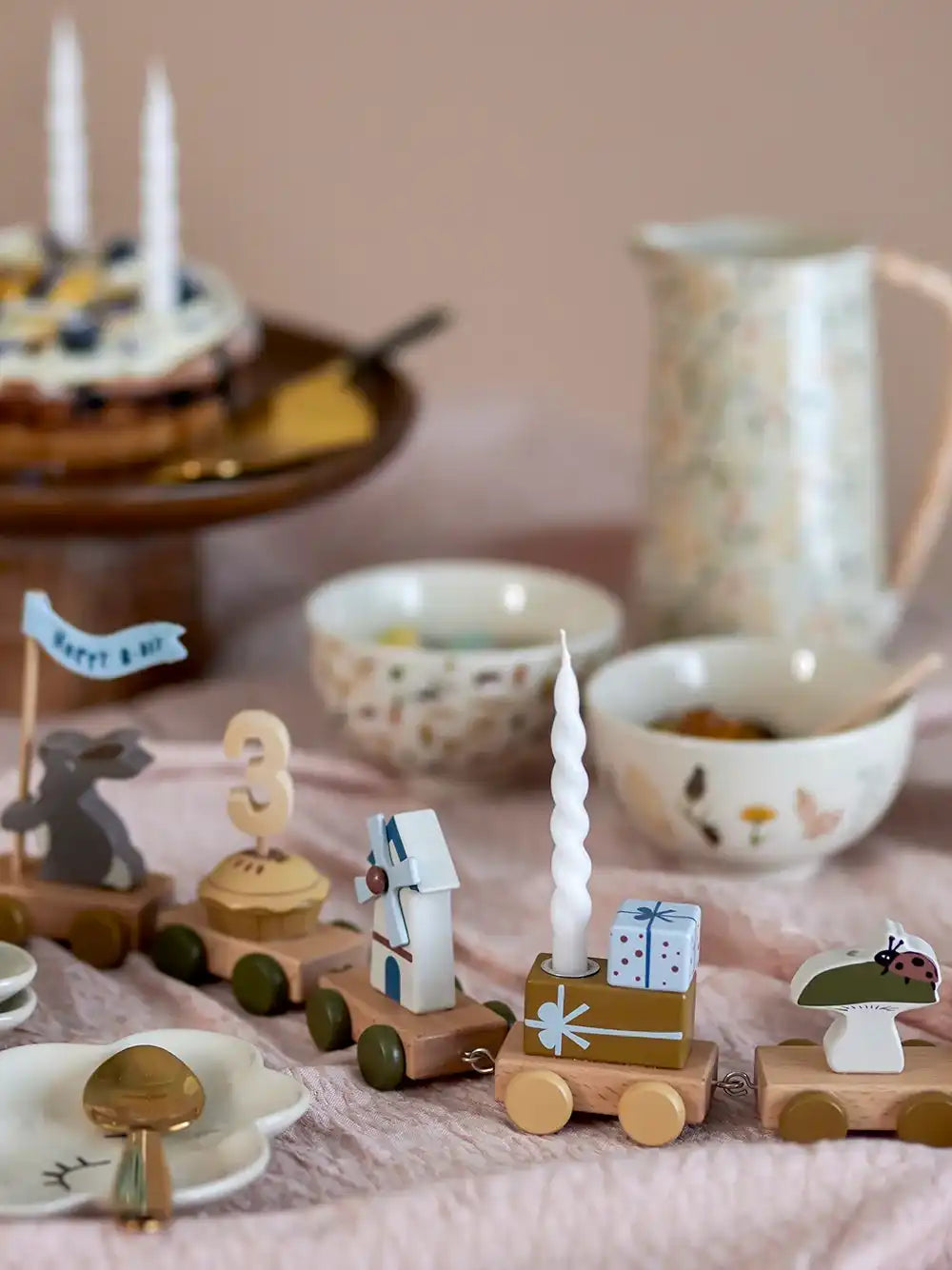 Waarom jij de verjaardagstrein van Bloomingville MINI wilt: Maak elk feestje extra gezellig met de Alfi verjaardagstrein. Het schattige oogstthema en de vrolijke kleurtjes zorgen meteen voor een feestelijke sfeer, of je nu viert met familie of vriendjes. In de mooie doos zit alles wat je nodig hebt: een vlaggetje in rood én blauw, en losse cijfers van 0 tot 9. Zo zet je makkelijk de juiste leeftijd erbij en maak je van elke verjaardag iets speciaals.