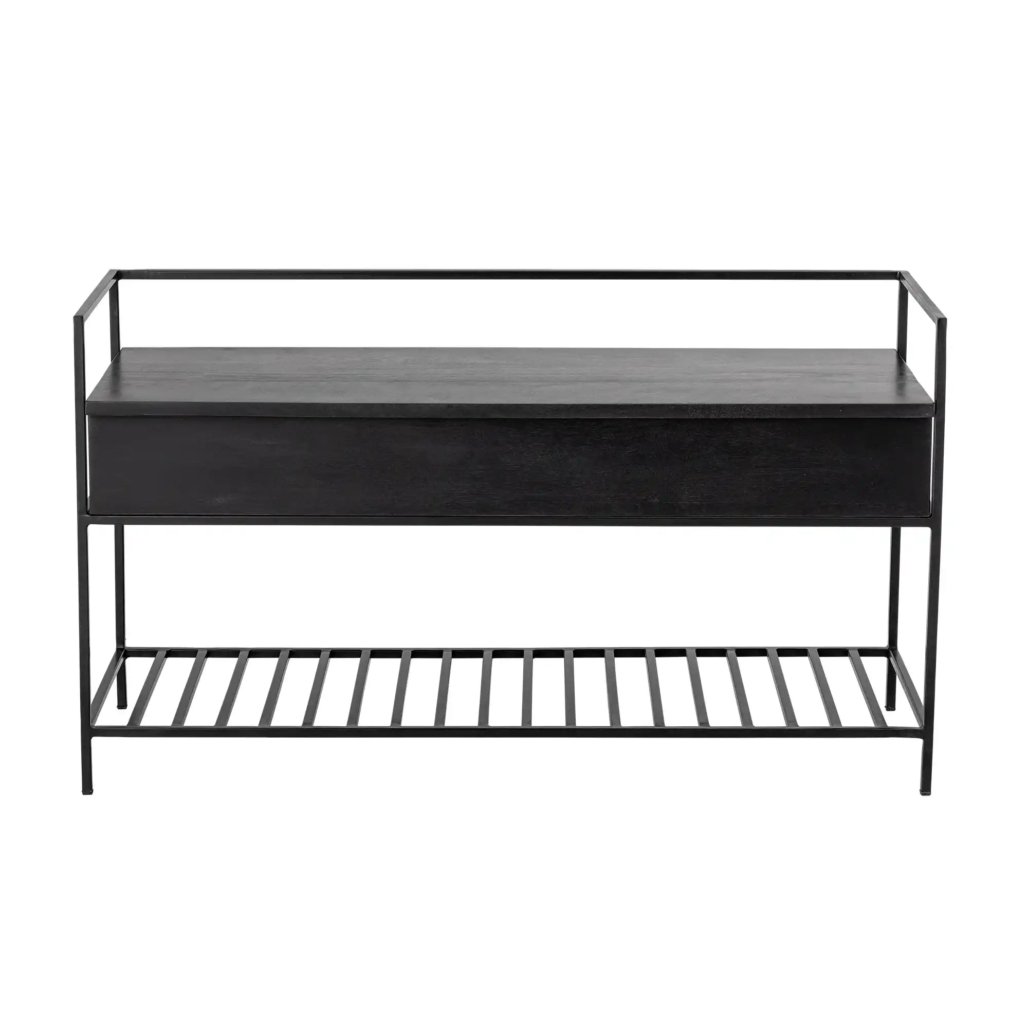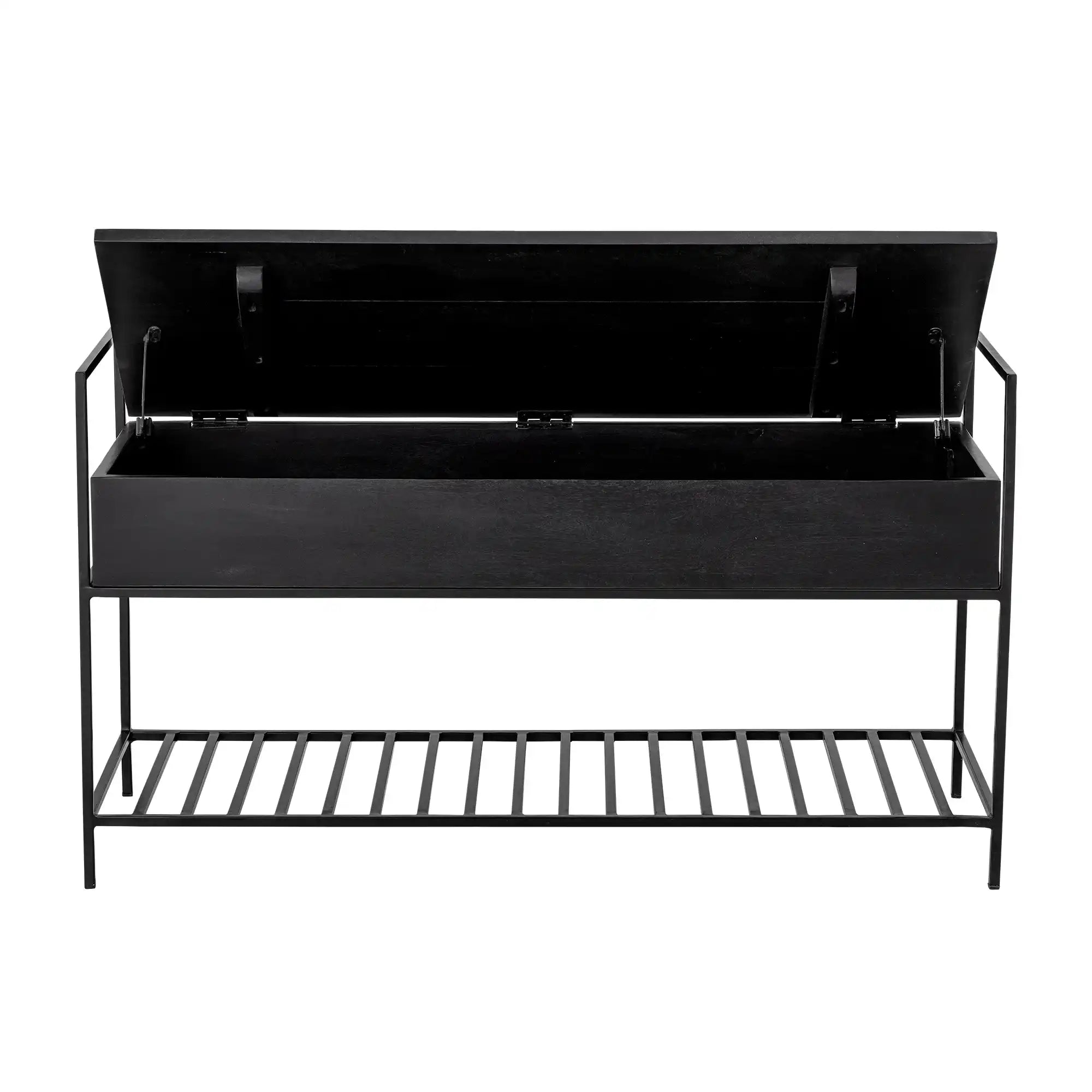 Duurzaam & functioneel design: De bank is vervaardigd uit FSC-gecertificeerd mangohout, wat zorgt voor een warme, natuurlijke uitstraling en tegelijkertijd bijdraagt aan verantwoord wonen. De ruime afmetingen (102 x 40 x 58 cm) bieden voldoende zit- én opbergruimte, terwijl het zwarte hout moeiteloos past in ieder Scandinavisch interieur. Dankzij het soft-close deksel berg je spullen veilig én stil op.