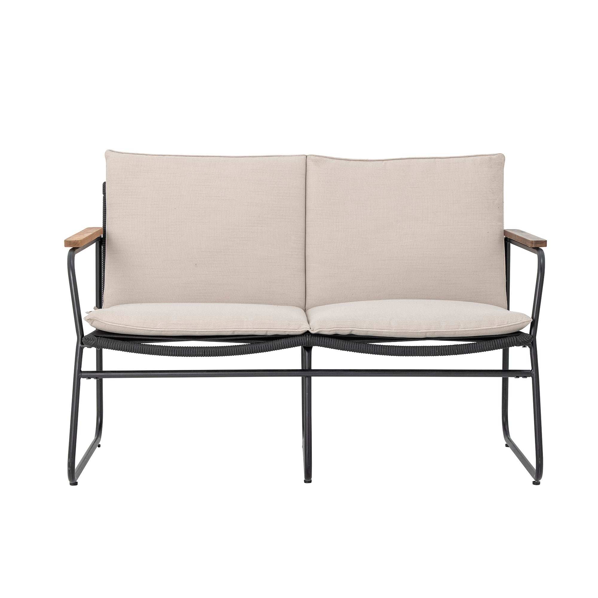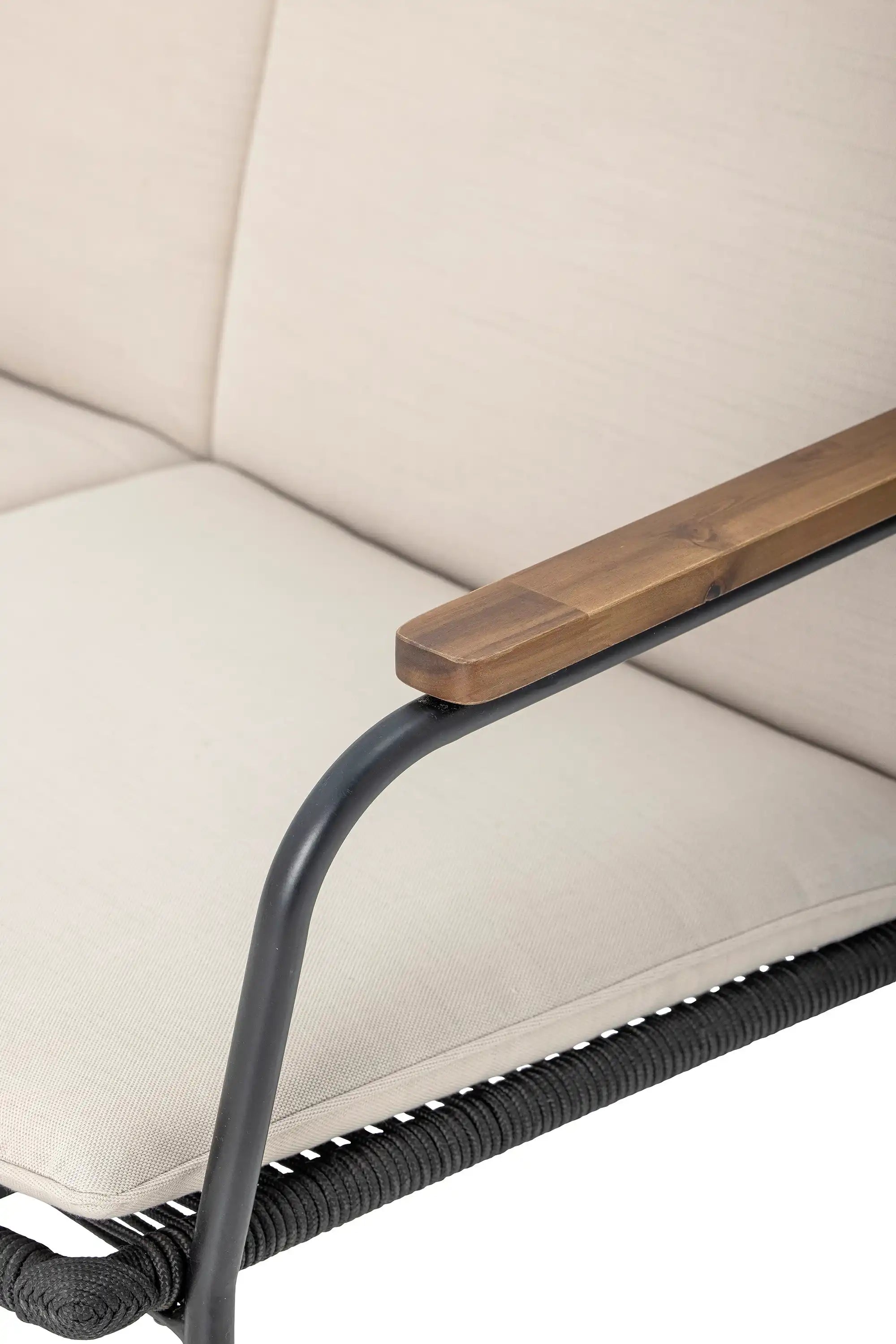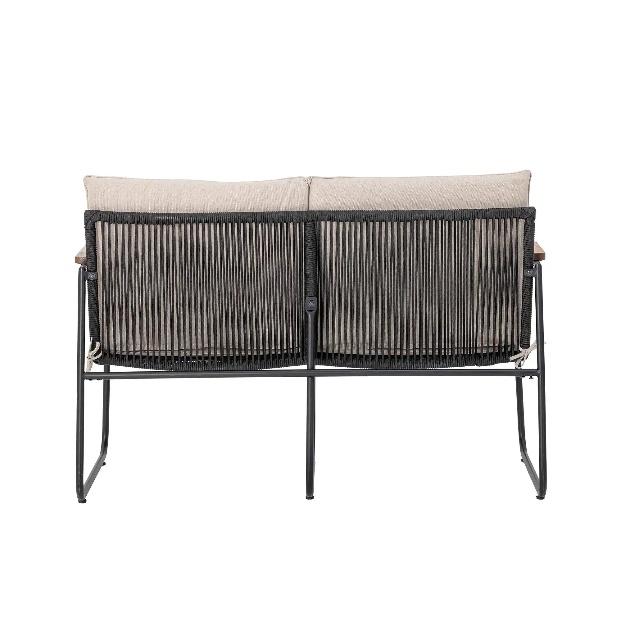 Details & materiaal: Deze stijlvolle bank combineert stevig acaciahout, robuust zwart metaal en een fraai gevlochten touwwerk met lichte, comfortabele kussens. Dankzij het formaat (68 x 76 x 125 cm) past hij moeiteloos in kleinere hoeken en is hij toch ruim genoeg om heerlijk te zitten. De lichte constructie maakt verplaatsen extra gemakkelijk, zodat je flexibel blijft in je styling.