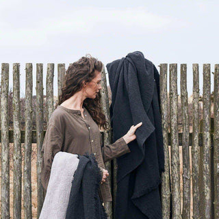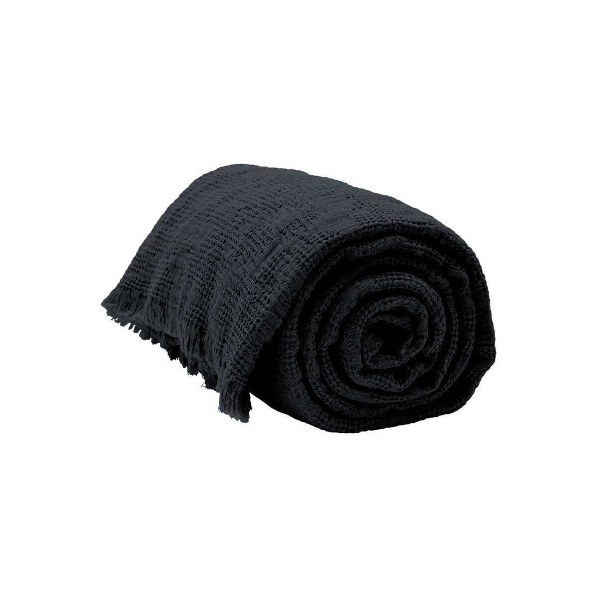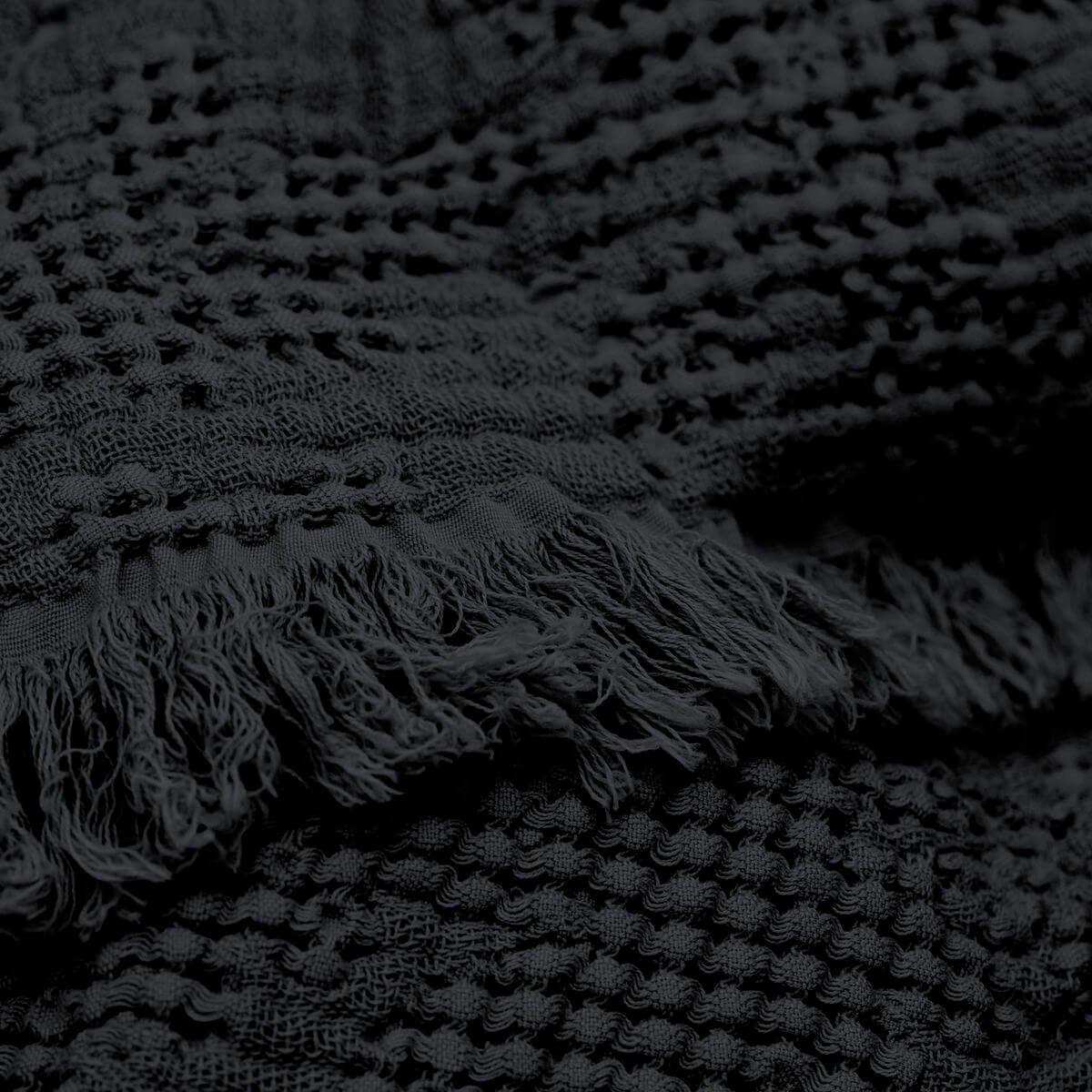 Geef je bed de finishing touch met de juiste bedsprei. Hilda heeft een donkergrijze, bijna zwarte kleur en een ontwerp dat verrast als je het van dichtbij bekijkt. Het verhoogde patroon met wafelstructuur is gemaakt met jacquardweefgetouwen. Het patroon wordt niet gedrukt of gebreid, maar rechtstreeks in de stof geweven. Het resultaat is een zachte en luxueuze sprei waarin de informele uitstraling en ingewikkelde details prachtig samenkomen. Gebruik het als een sprei of een comfortabele plaid. Combineer met het beddengoed van byNORD om een ontspannen sfeer in je slaapkamer te creëren.