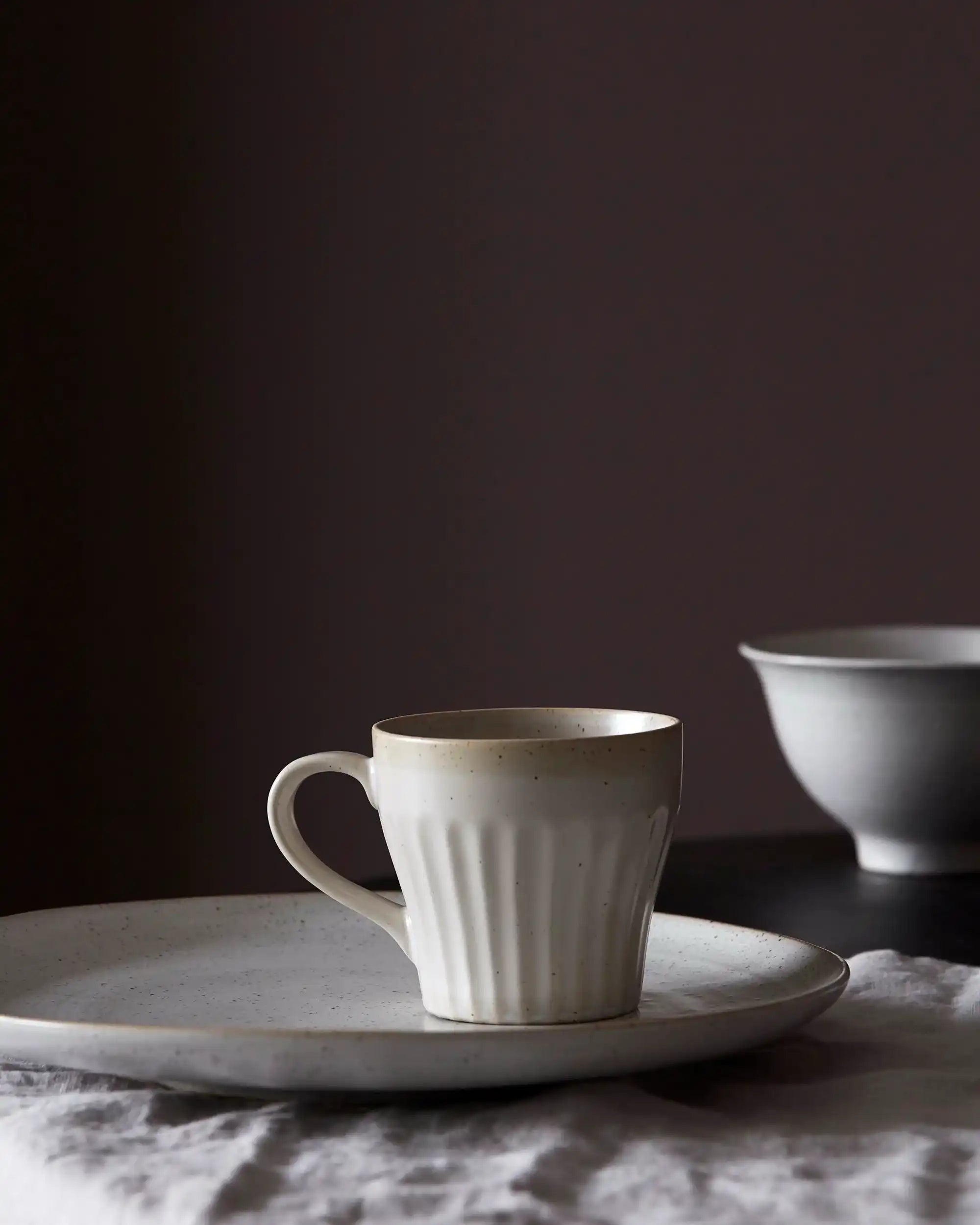 Een goed begin van de dag begint met een vertrouwd kopje. Dit stijlvolle kopje uit de Berica-serie voegt warmte en karakter toe aan elk koffiemoment. De gespikkelde afwerking en verfijnde ribbels geven het ontwerp een subtiele twist, passend binnen een modern interieur met een rustieke knipoog.