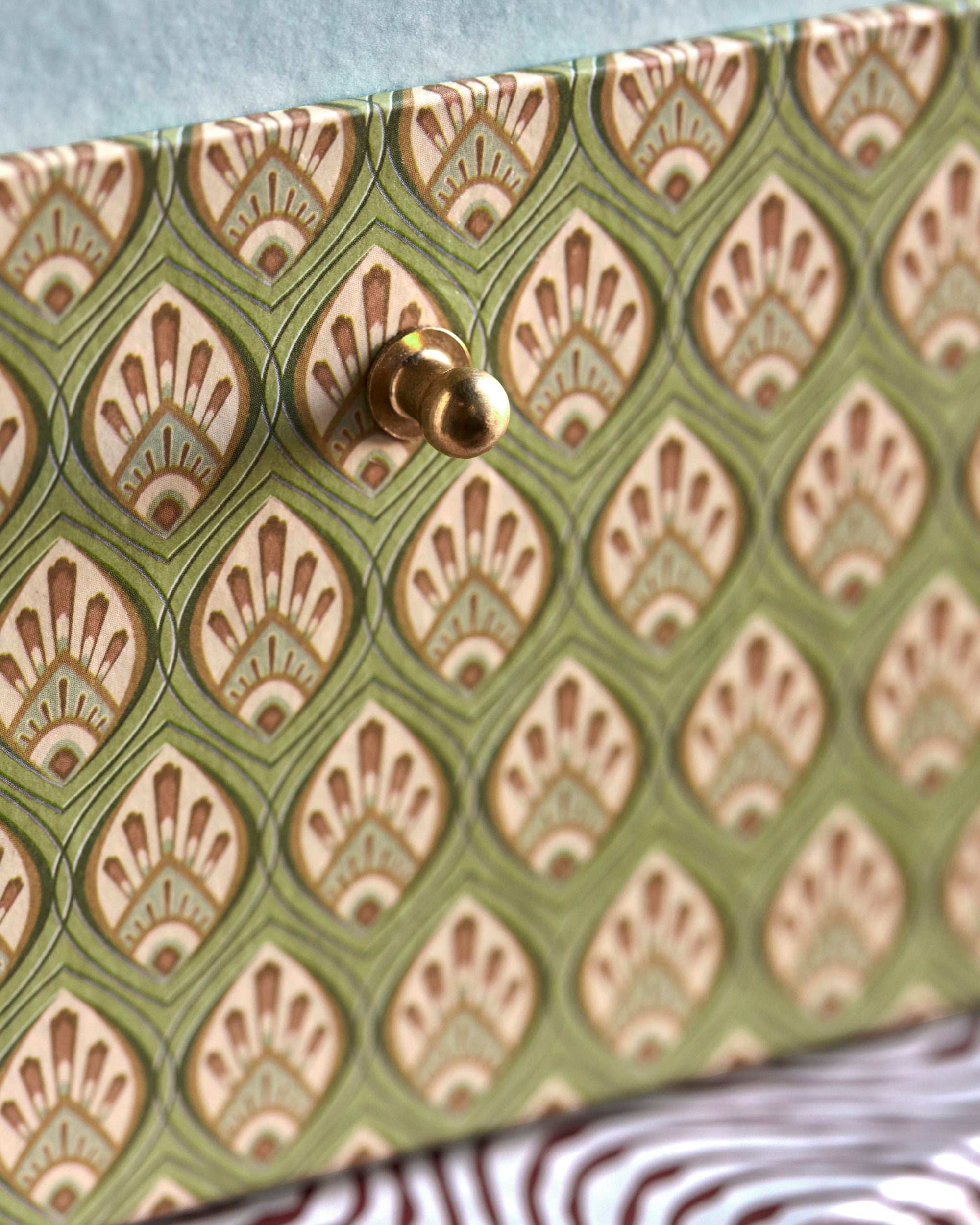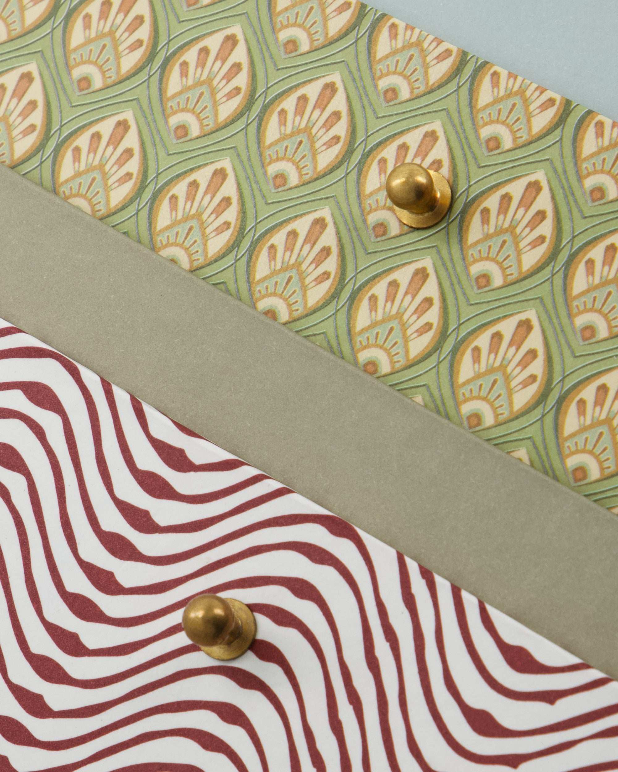 Perfect voor het opbergen van kantoorbenodigdheden, foto's of andere kleine schatten. De opvallende patronen in warme rood- en groentinten zorgen voor een vrolijke noot in je interieur. De praktische elastieksluiting met goudkleurige knoop voegt net dat beetje extra elegantie toe, terwijl de effen binnenzijde zorgt voor een rustige en overzichtelijke basis.