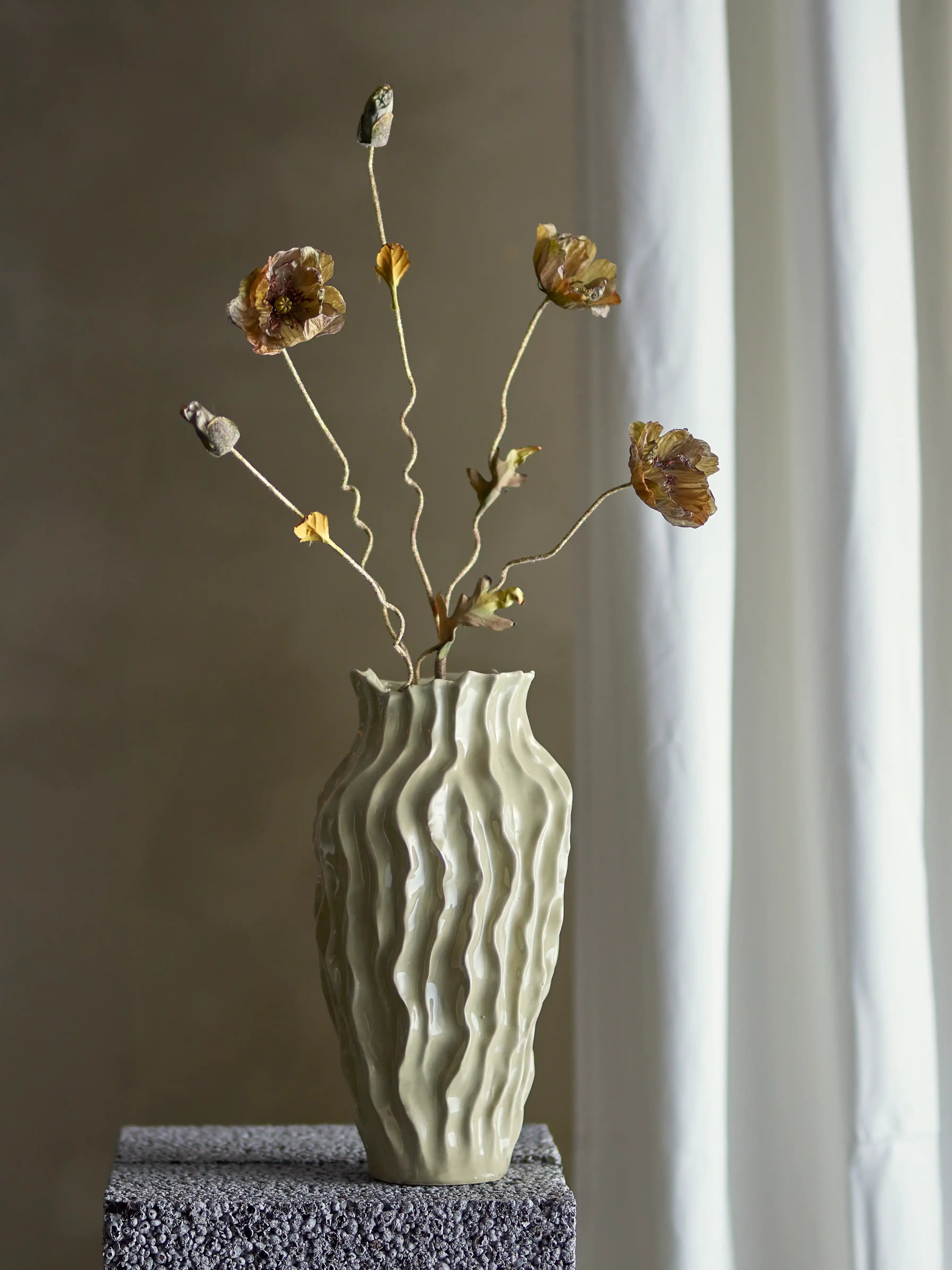 Details & materiaal: De Poppy steel is zorgvuldig vervaardigd uit hoogwaardige kunstmaterialen die dankzij de levendige textuur en subtiele goudbruine tint bijna niet van echt te onderscheiden zijn. Met een indrukwekkende lengte van 104 cm en een diameter van 16 cm springt hij elegant in het oog, zonder het kwetsbare onderhoud van echte bloemen.