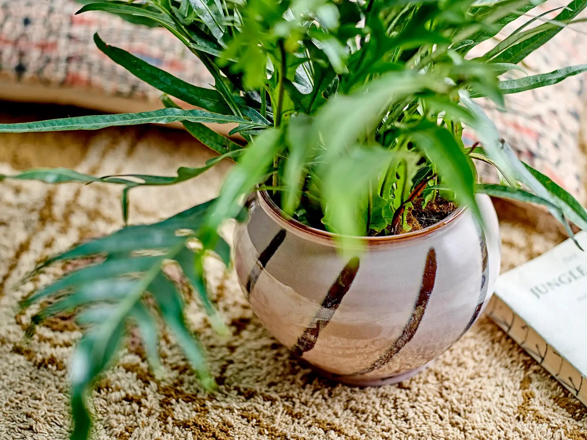 Details & materiaal: Met een royale diameter van 21 cm en een hoogte van 16 cm biedt deze bloempot volop ruimte voor jouw favoriete groene plant. Het duurzame aardewerk staat garant voor een kwalitatieve uitstraling, terwijl de handgeschilderde, donkergekleurde lijnen een bijzonder contrast vormen tegen het zachte roze.