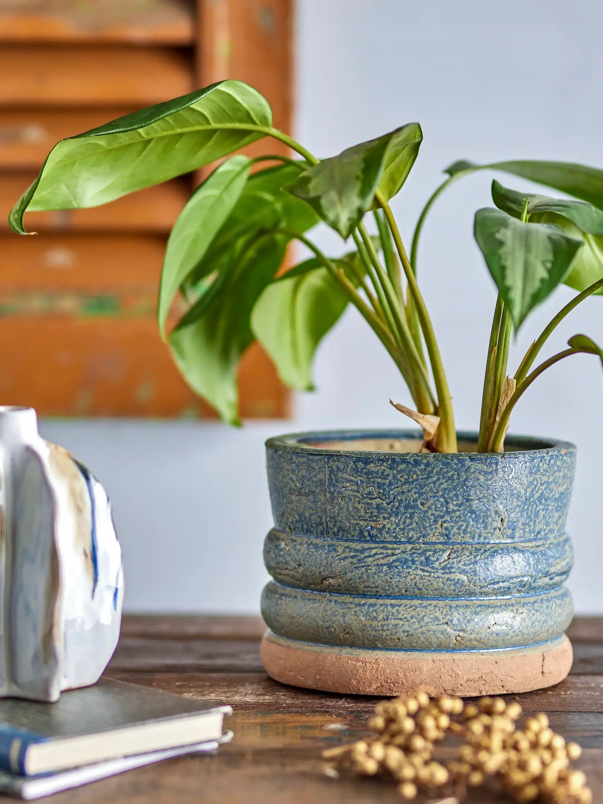 Waarom je de bloempot van Bloomingville wilt hebben: De Maizun bloempot brengt precies dat beetje spanning dat je setting nodig heeft. Het bovenste deel is afgewerkt met een blauw reactief glazuur; de ruwe terracotta onderzijde blijft zichtbaar voor een stoer contrast. Het resultaat is een decoratief object met veel textuur en diepte dat je plant of stilleven meteen meer presence geeft. Voor liefhebbers van Scandinavisch wonen is dit een stijlvol accent dat moeiteloos warmte en karakter introduceert.