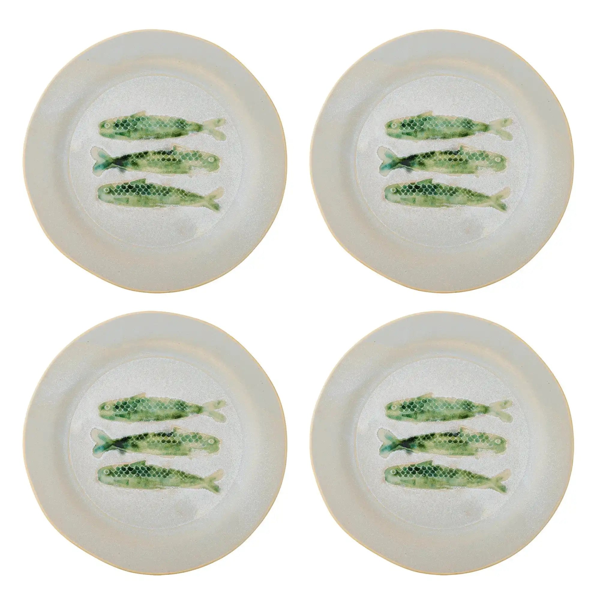 Waarom je het bord van Bloomingville wilt hebben: Het Hadden bord brengt direct karakter op tafel. In het midden pronken drie groene vissen in reliëf, omlijst door een warme goudbruine rand. Deze speelse combinatie geeft elke setting een frisse, Scandinavische twist. Je ontvangt een set van vier, zodat je meteen een harmonieus geheel neerzet voor een ontspannen diner of een vrolijke brunch.