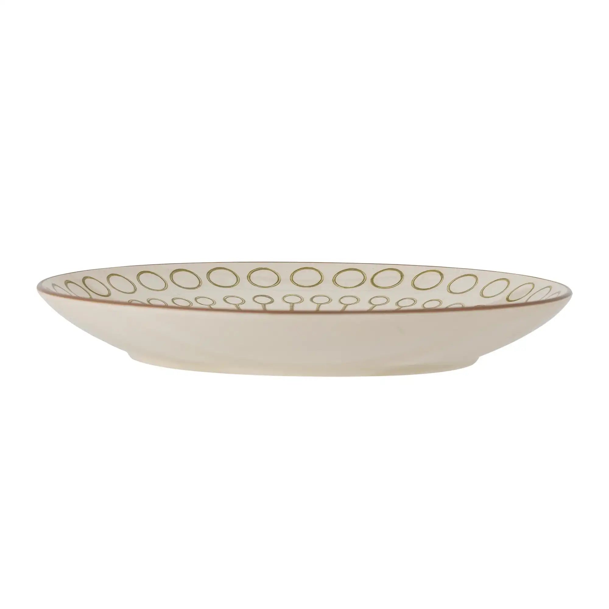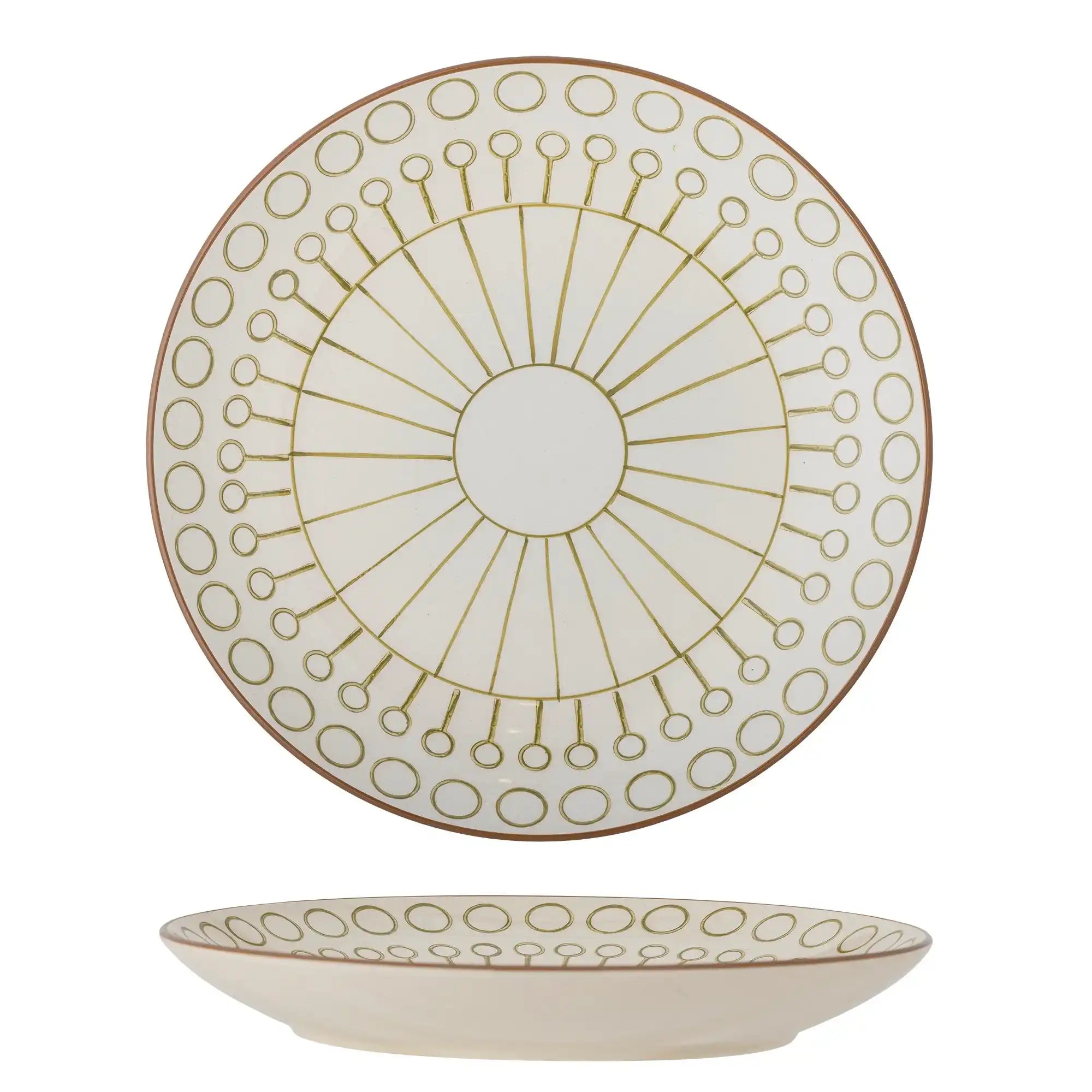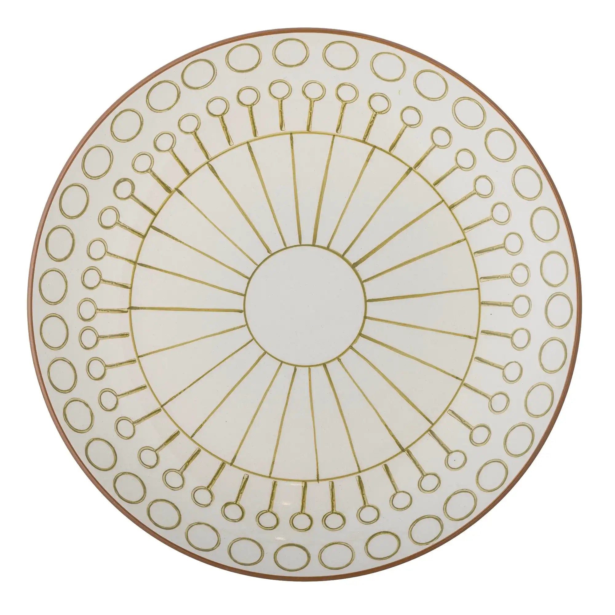 Details & materiaal: Gemaakt van aardewerk met ø 25.5 cm biedt het ruim plaats aan hoofdgerechten, salades of shared bites. De combinatie van groen met grafische details in warme tonen zorgt voor diepte op tafel en laat zowel kleurrijke als minimalistische gerechten mooi uitkomen. Het materiaal geeft een solide uitstraling en helpt je een coherente, hoogwaardige look neer te zetten. De tijdloze vorm maakt het eenvoudig te matchen met bestaand servies.