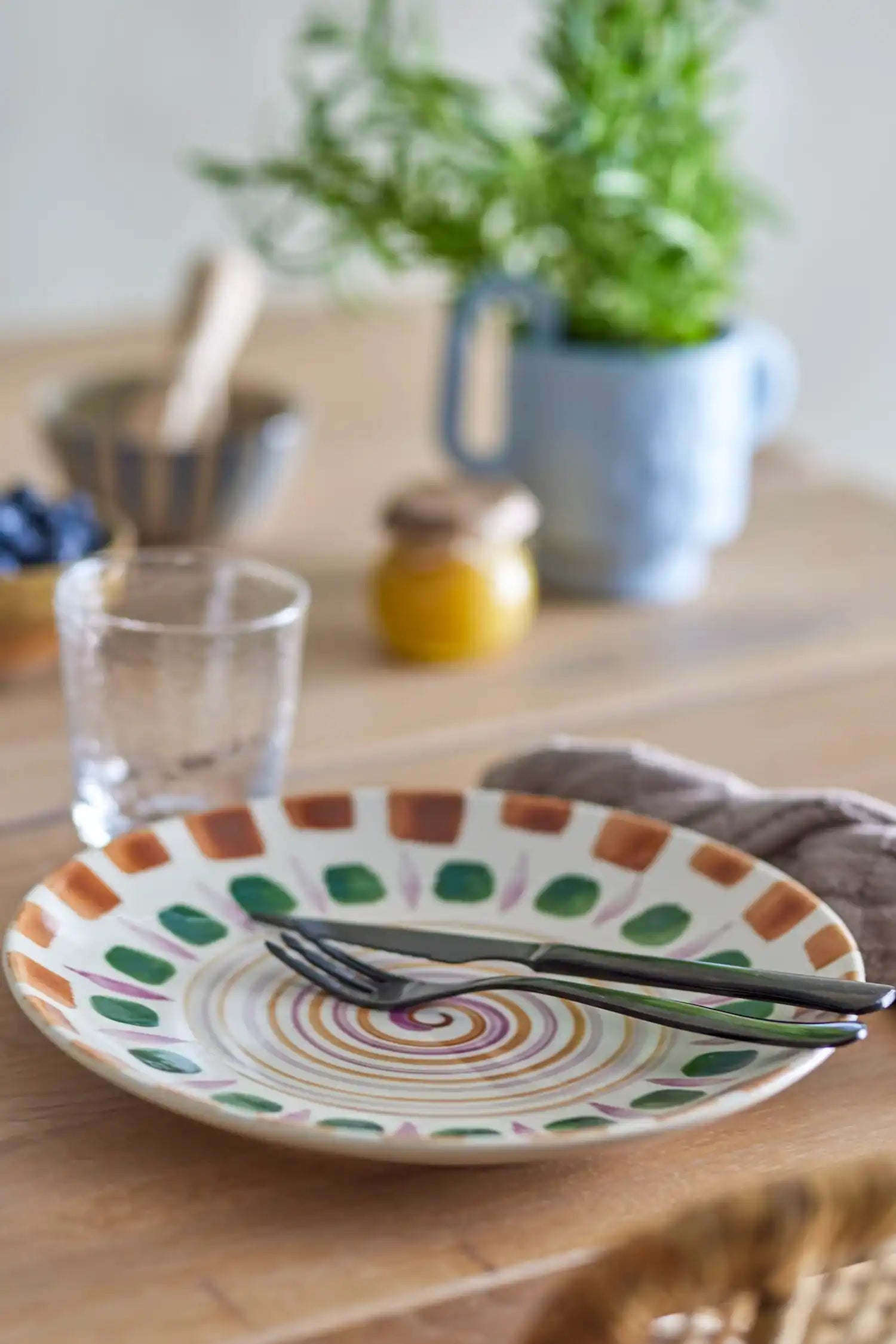 Details & materiaal: Elk bord is vervaardigd uit stevig aardewerk en met de hand beschilderd in een diepe groene tint. Met zijn diameter van 20,5 cm is het de perfecte maat voor ontbijt, lunch of een mooi dessert. Geen bord is precies gelijk, wat elk exemplaar bijzonder maakt en karakter geeft aan jouw serviescollectie.