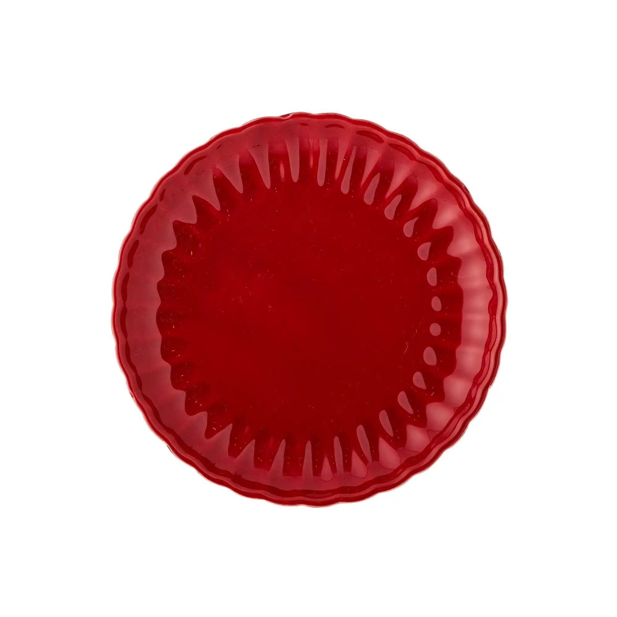 Details & materiaal: Het bord heeft een royale diameter van 20 cm en is vervaardigd uit stevig aardewerk, afgewerkt met een diepe rode glazuurlaag. Opvallend zijn de speels golvende randen, die niet alleen uniek ogen maar ook elk bord een eigen karakter geven dankzij de subtiele kleurvariaties in het glazuur.