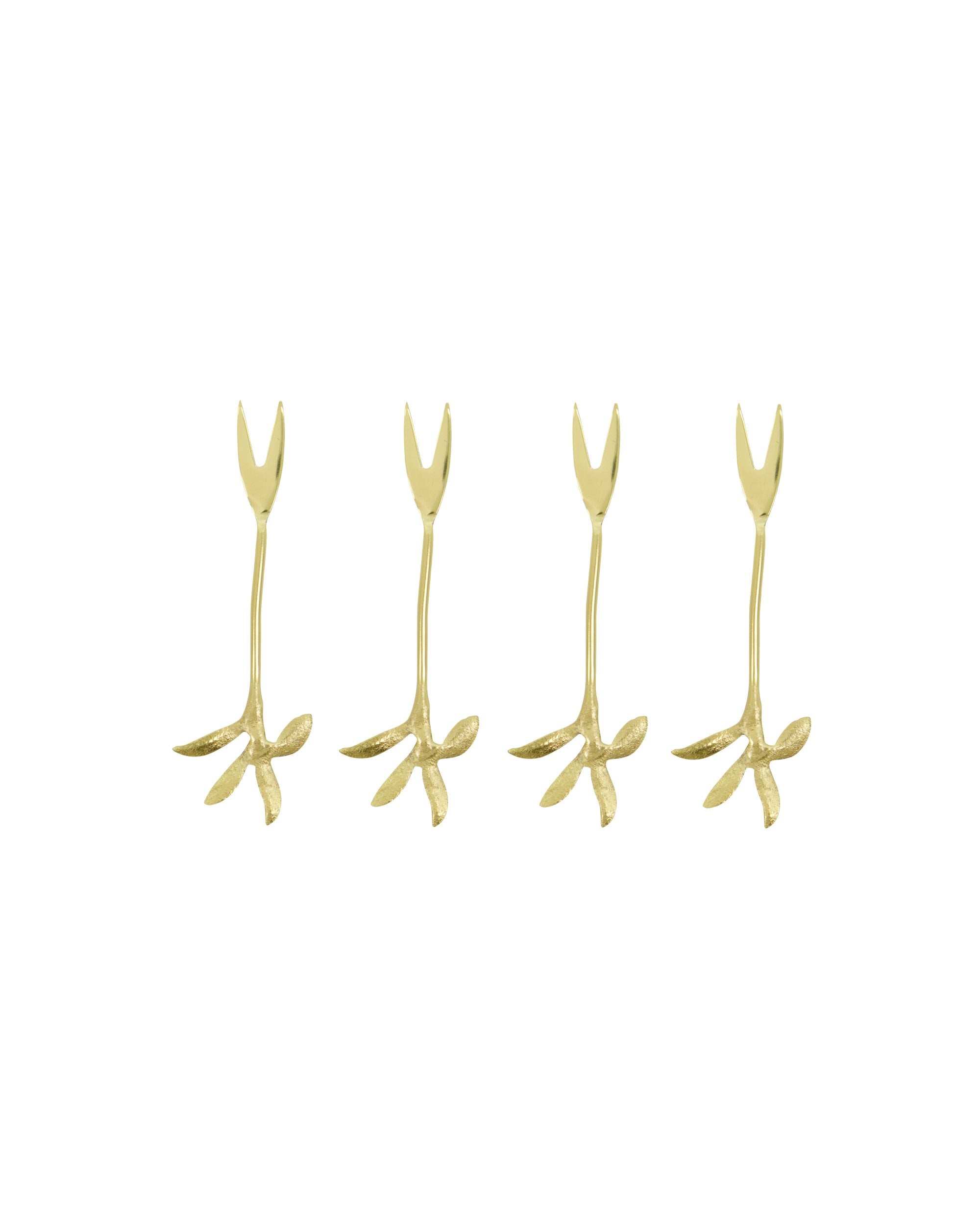 Til je borrelplank of dinerparty naar een hoger niveau met de borrelvorkjes Fork goud van House Doctor. Deze set van vier serveervorkjes is gemaakt van roestvrij staal en afgewerkt in een elegante antiekgouden tint. De subtiele bladmotieven aan de bovenzijde en het organisch gevormde handvat maken ze niet alleen functioneel, maar ook een lust voor het oog.