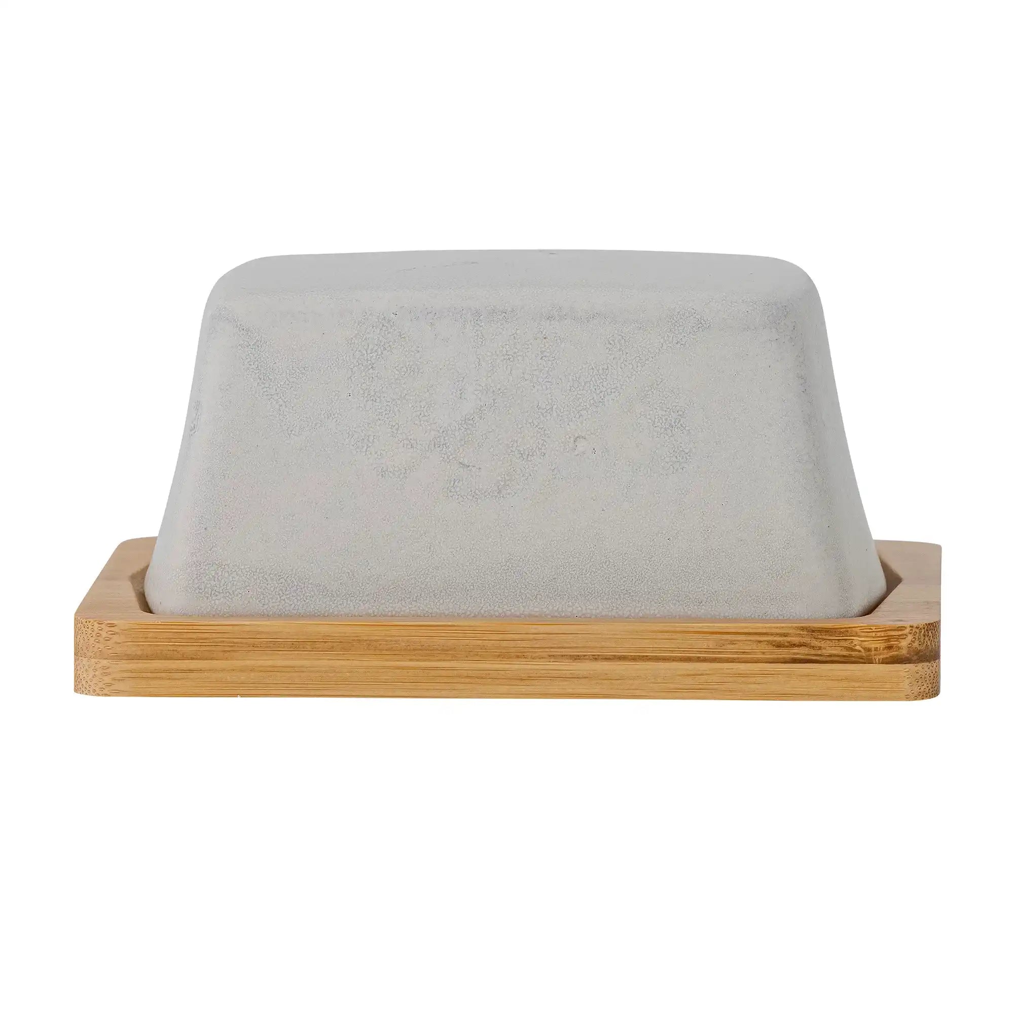 Materiaal & details: De Josefine boterdoos combineert robuust grijs aardewerk met een praktisch bamboe deksel, wat zorgt voor een ambachtelijke uitstraling en een duurzaam karakter. Dankzij het formaat (16 x 12 x 7,5 cm) is er genoeg ruimte voor een standaard pakje boter, terwijl het gesloten ontwerp je boter langer vers houdt. De stevige materialen zijn bestand tegen dagelijks gebruik, maar voelen tegelijkertijd verfijnd aan.