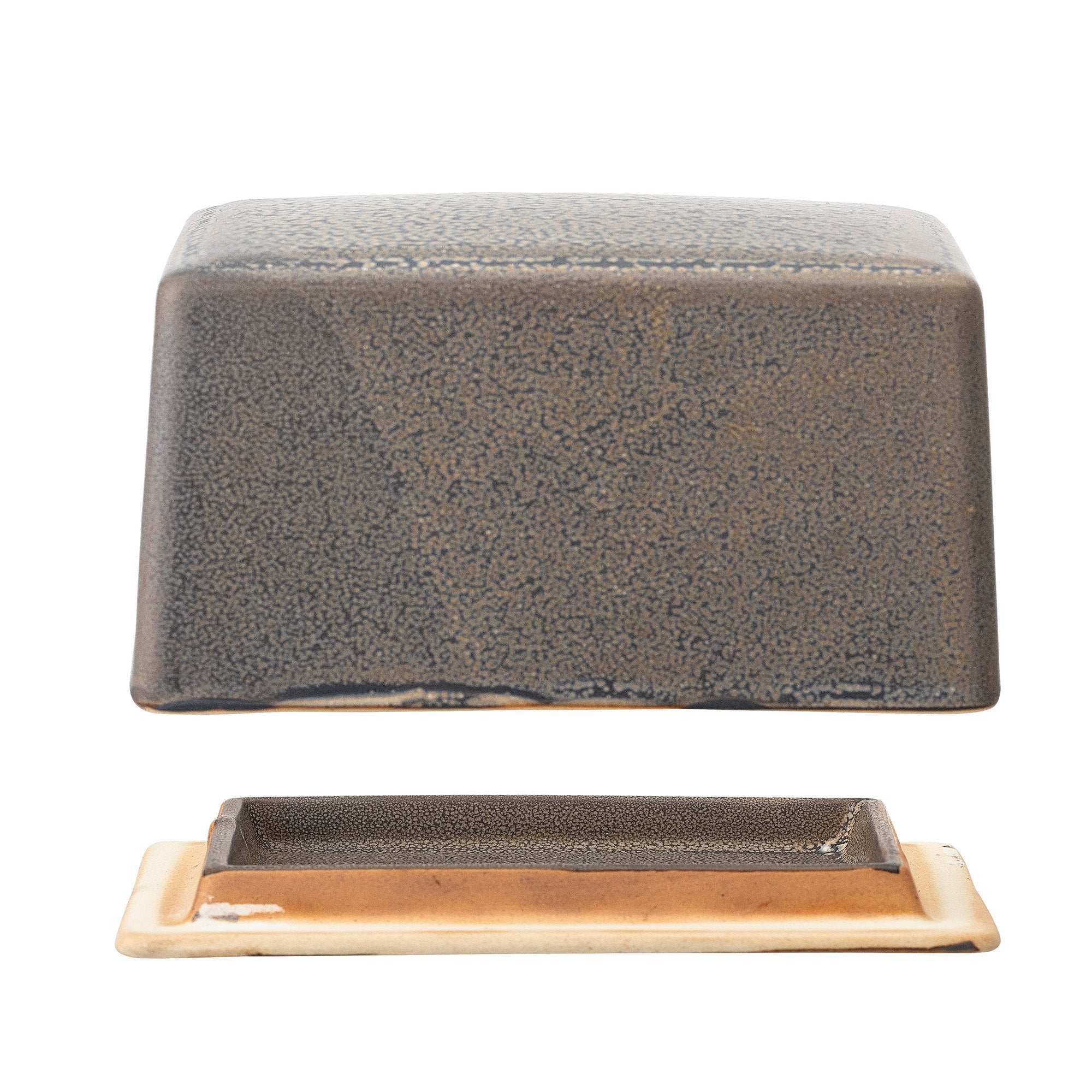 Details & materiaal: De botervloot is vervaardigd uit stevig aardewerk en afgewerkt in een moderne, grijze kleur. Met bescheiden afmetingen van 12 bij 14 cm en een hoogte van 7 cm past hij perfect in je koelkast én op tafel. Het deksel zorgt ervoor dat je boter vers en stijlvol bewaard blijft, terwijl de gladde afwerking het reinigen vergemakkelijkt.