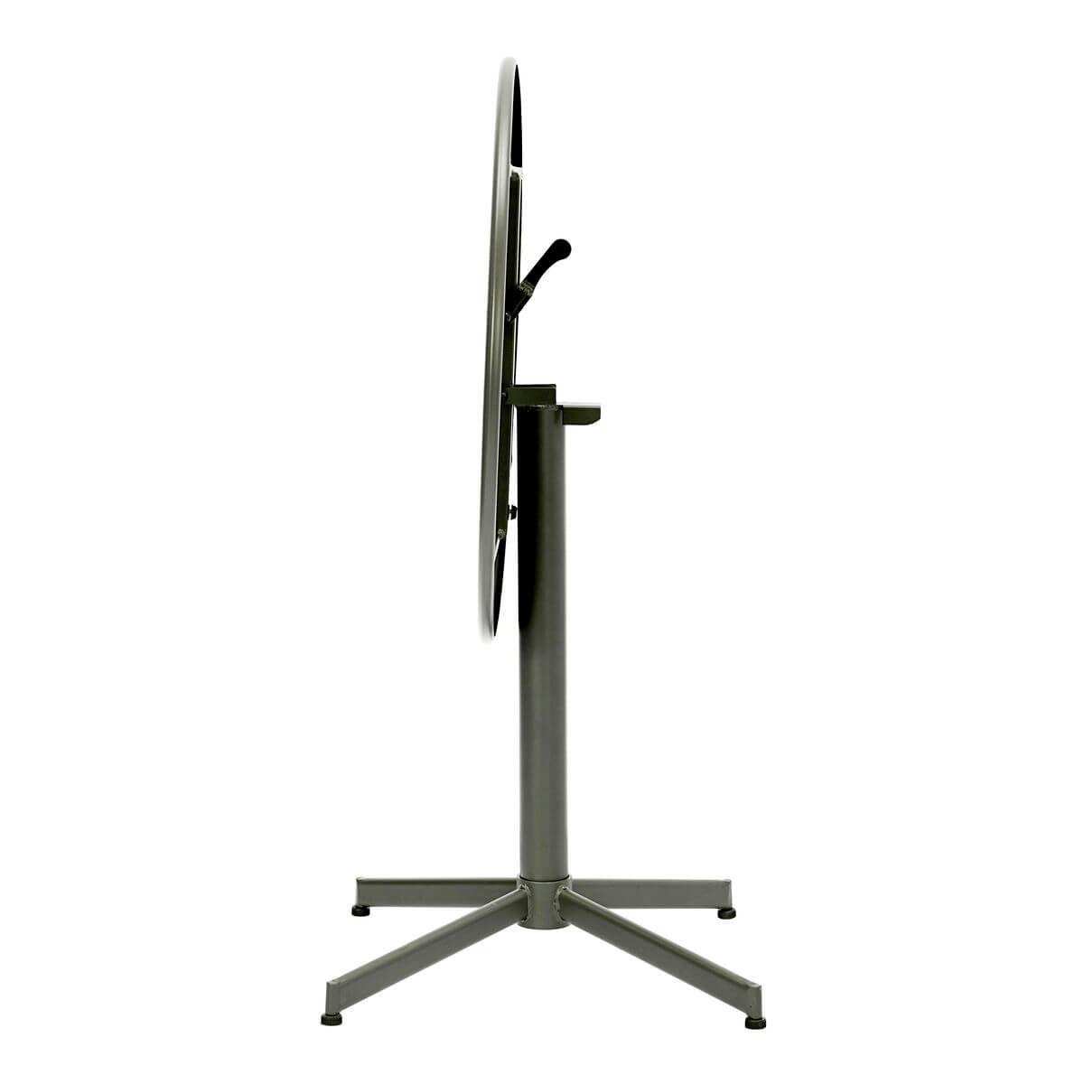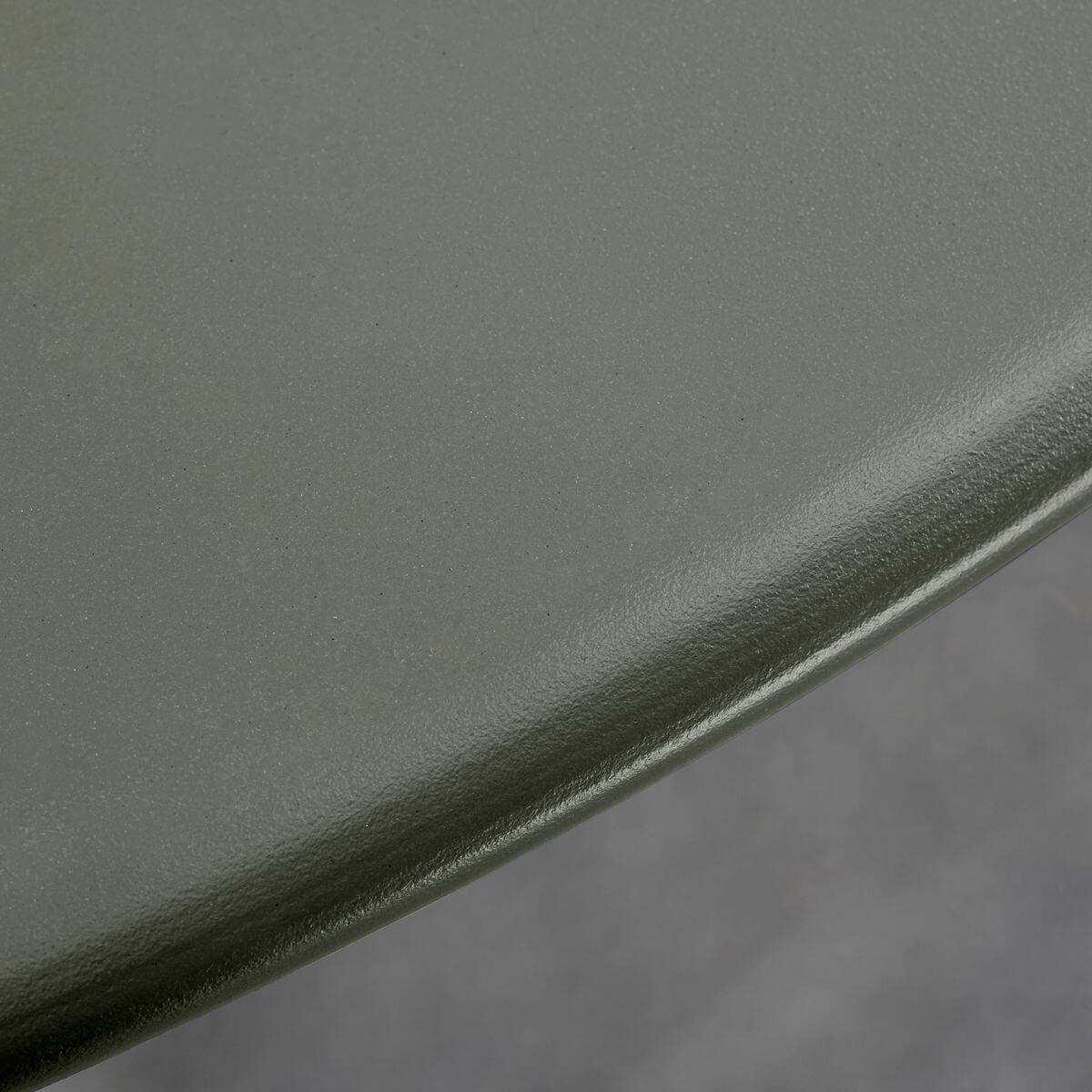 Creëer een informele sfeer met de kleine, ronde (buiten) tafel van House Doctor. De Helo tafel is de perfecte plek om te ontspannen of je hem nu op het balkon of in een hoek van de woonkamer plaatst. De ijzeren tafel is afgewerkt met een matgroene poedercoating, waardoor het eigentijdse ontwerp in elke interieurstijl past. Als je ruimte wilt besparen op een klein balkon of terras, kun je het tafelblad eenvoudig rechtop zetten wanneer je de tafel niet gebruikt. Maak de zithoek compleet met je favoriete stoelen en sier de tafel met kandelaars voor een unieke toets. Laat de Helo tafel niet buiten in de regen of de kou staan, maar berg haar binnen op. Zo zul je jarenlang plezier van haar hebben.
