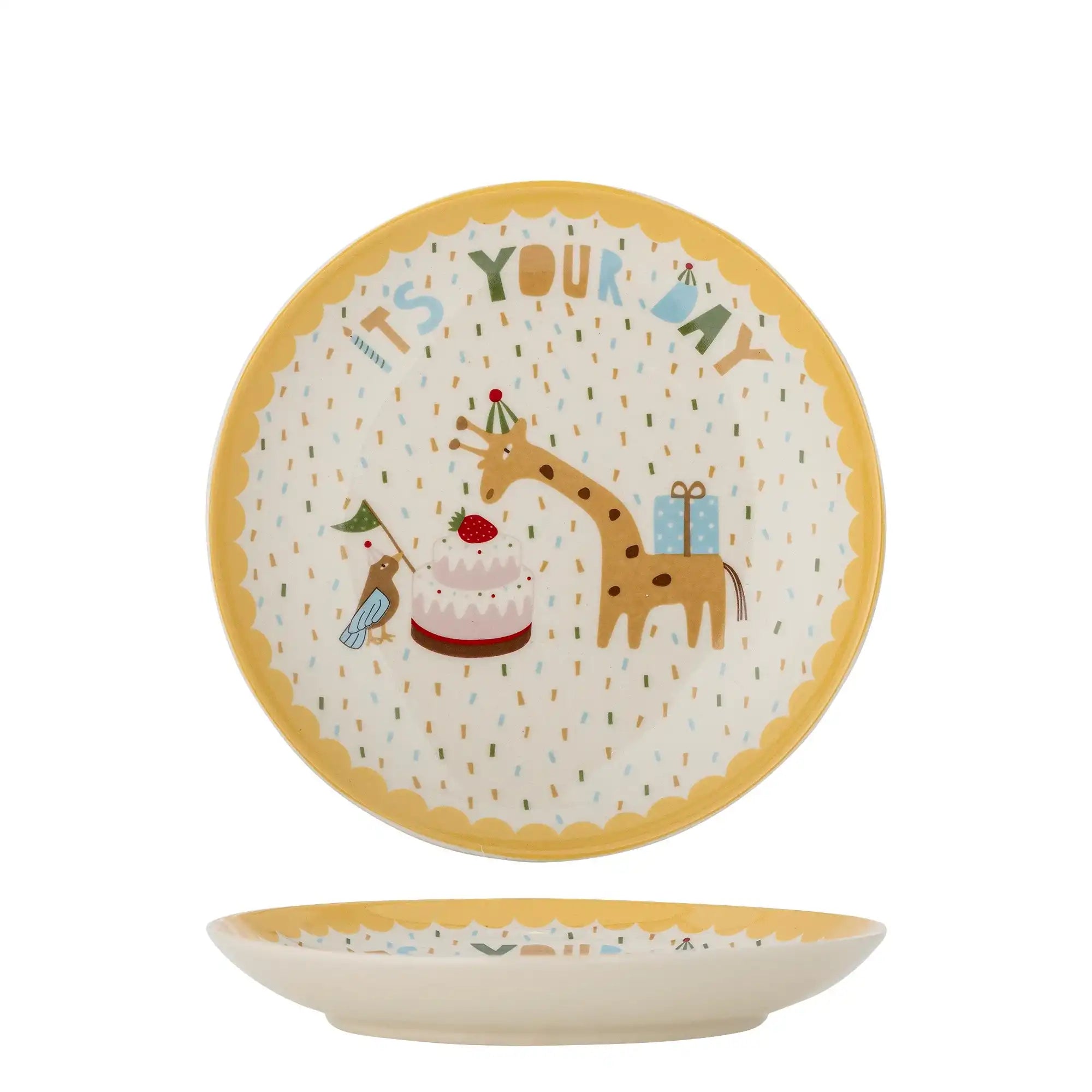 Waarom jij dit bordje van Bloomingville MINI wilt: Het Celebrate bordje zorgt voor een vrolijke sfeer aan tafel. De zonnige gele kleur en de golvende rand maken van elk eetmoment een klein feestje. Of je nu een taartje, wat fruit of een koekje serveert, dit vrolijke bordje maakt het extra leuk. Het past helemaal bij de speelse en heldere stijl van Het Adres: gezellig en handig tegelijk. Met dit lieve bordje wordt elk hapje een klein feestje.
