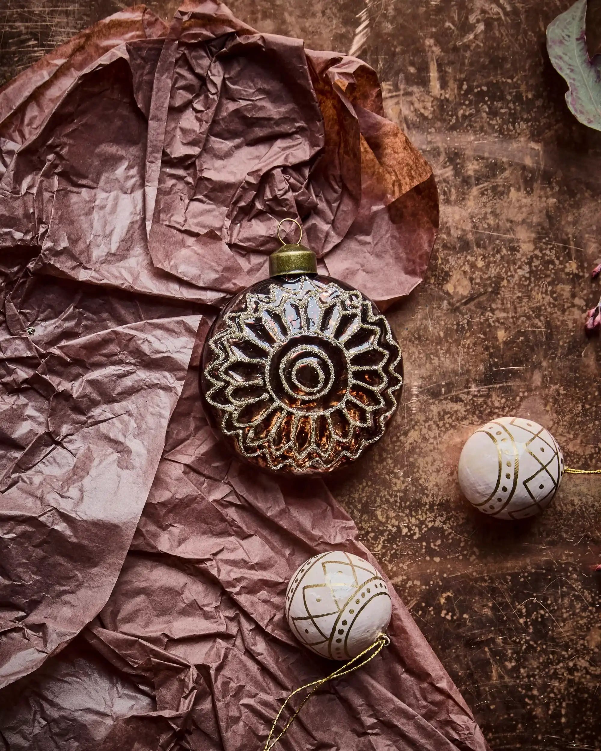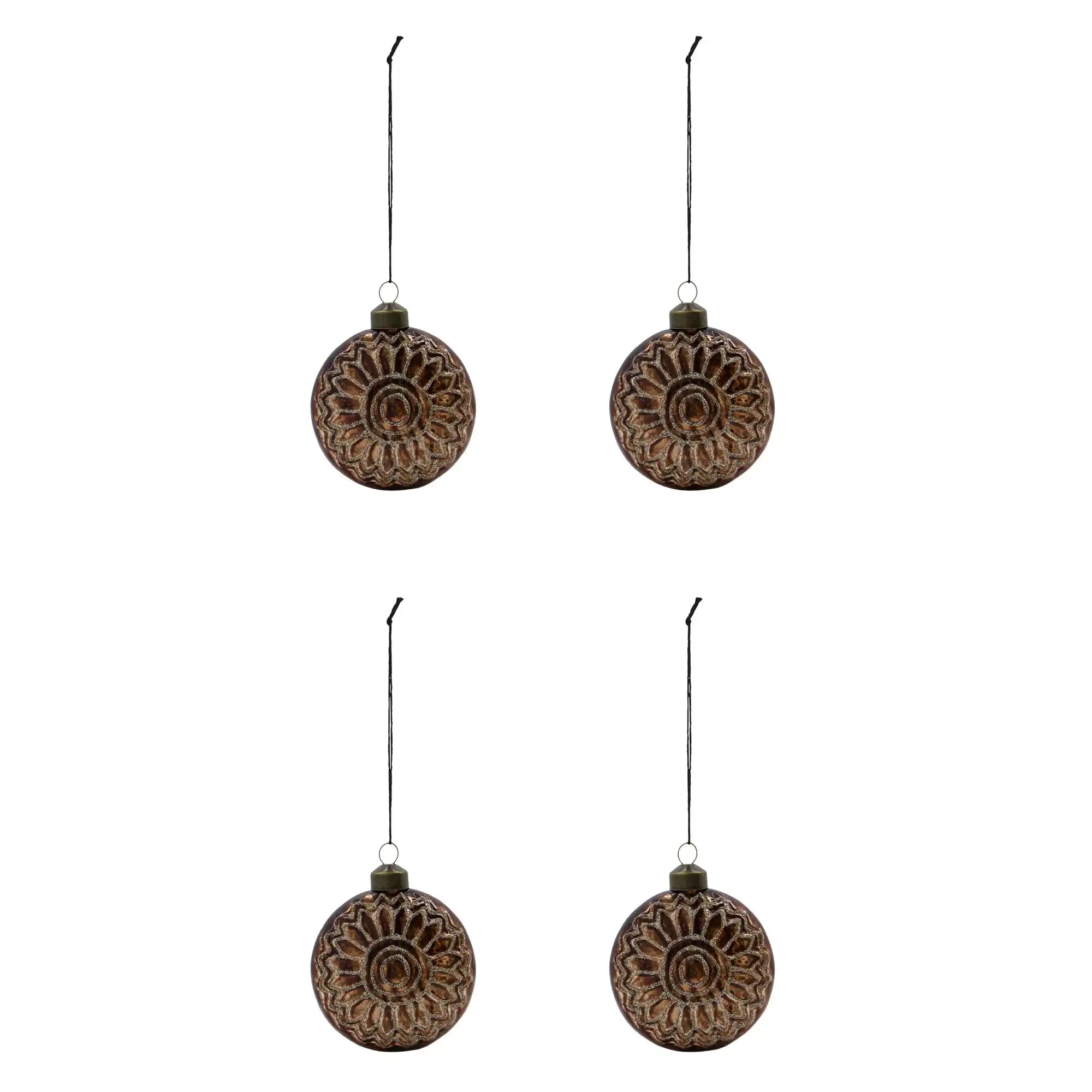 Breng subtiele warmte in je kerstinterieur met de Circulo ornamenten in bruin. Deze set van vier glazen kerstversieringen trekt direct de aandacht dankzij hun elegante afwerking en tijdloze uitstraling. Perfect voor wie op zoek is naar een verfijnde, sfeervolle toevoeging aan de feestdagen.