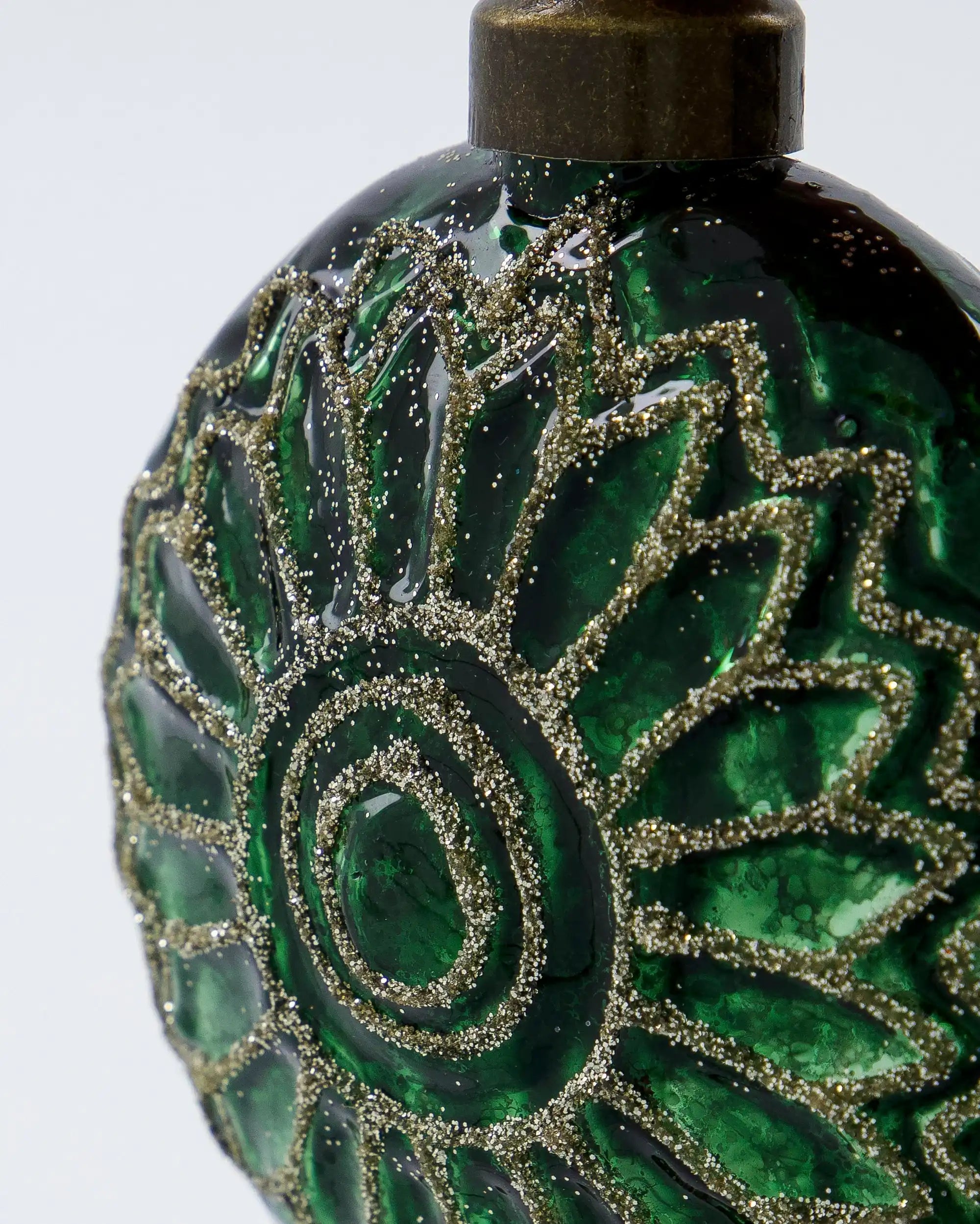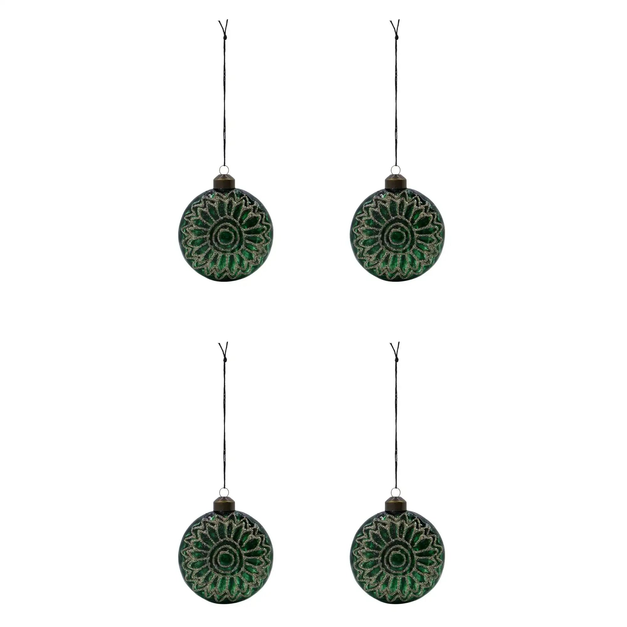 De ornamenten hebben een unieke platte vorm die net even anders is dan traditioneel kerstglaswerk. Ze zijn gemaakt van kunststof en aluminium, mondgeblazen voor een authentieke uitstraling. De donkergroene tint wordt prachtig aangezet met champagnekleurige glitterdetails. Elke ornament is 8 cm lang en 3,5 cm breed. Je ontvangt een set van vier stuks.