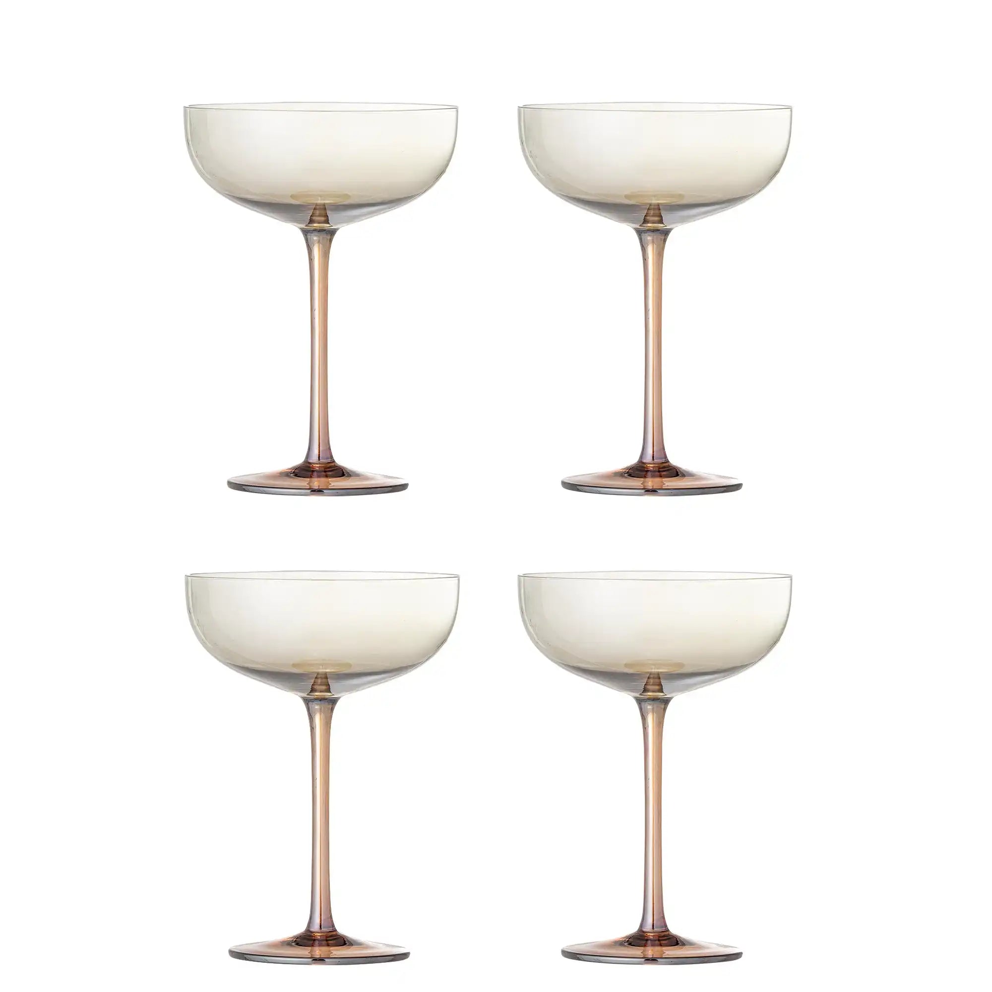 Waarom je dit wilt hebben: Met deze bronzen cocktailglazen van Bloomingville geef je ieder samenzijn een elegante, feestelijke uitstraling. Het warme tintje van het glas en de bijzondere parelmoerrand vangen prachtig het licht, waardoor elke tafelsetting tot leven komt en je gasten zich direct speciaal voelen.