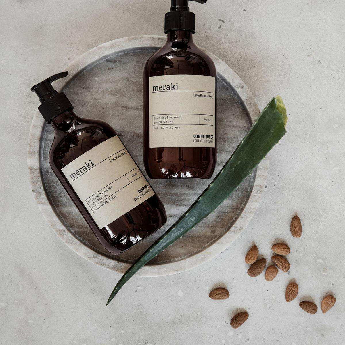 Door de toevoeging van de proteïnen, biologische aloë vera en amandelolie zal de Northern Dawn conditioner van Meraki niet alleen zorgen voor meer volume, maar ook voor een gezonde en stralende look van je haar.