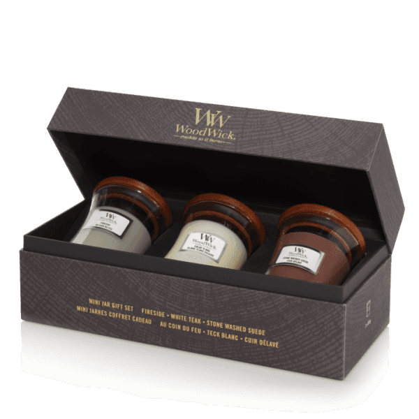 Kom goed voor de dag met de Deluxe giftset van Woodwick. De set bestaat uit 3 mini kaarsen met de geuren: Fireside, White Teak en Sand and Driftwood.