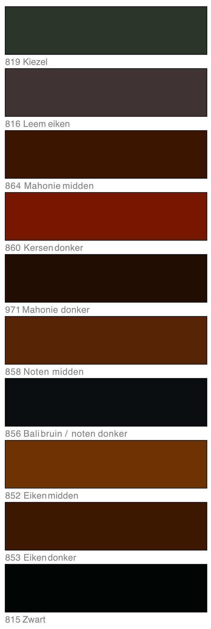 *De kleurkaart is ter indicatie van de kleuren, de kleuren kunnen in werkelijkheid afwijken in verband met verschillende houtsoorten en verschil in beeldschermen.