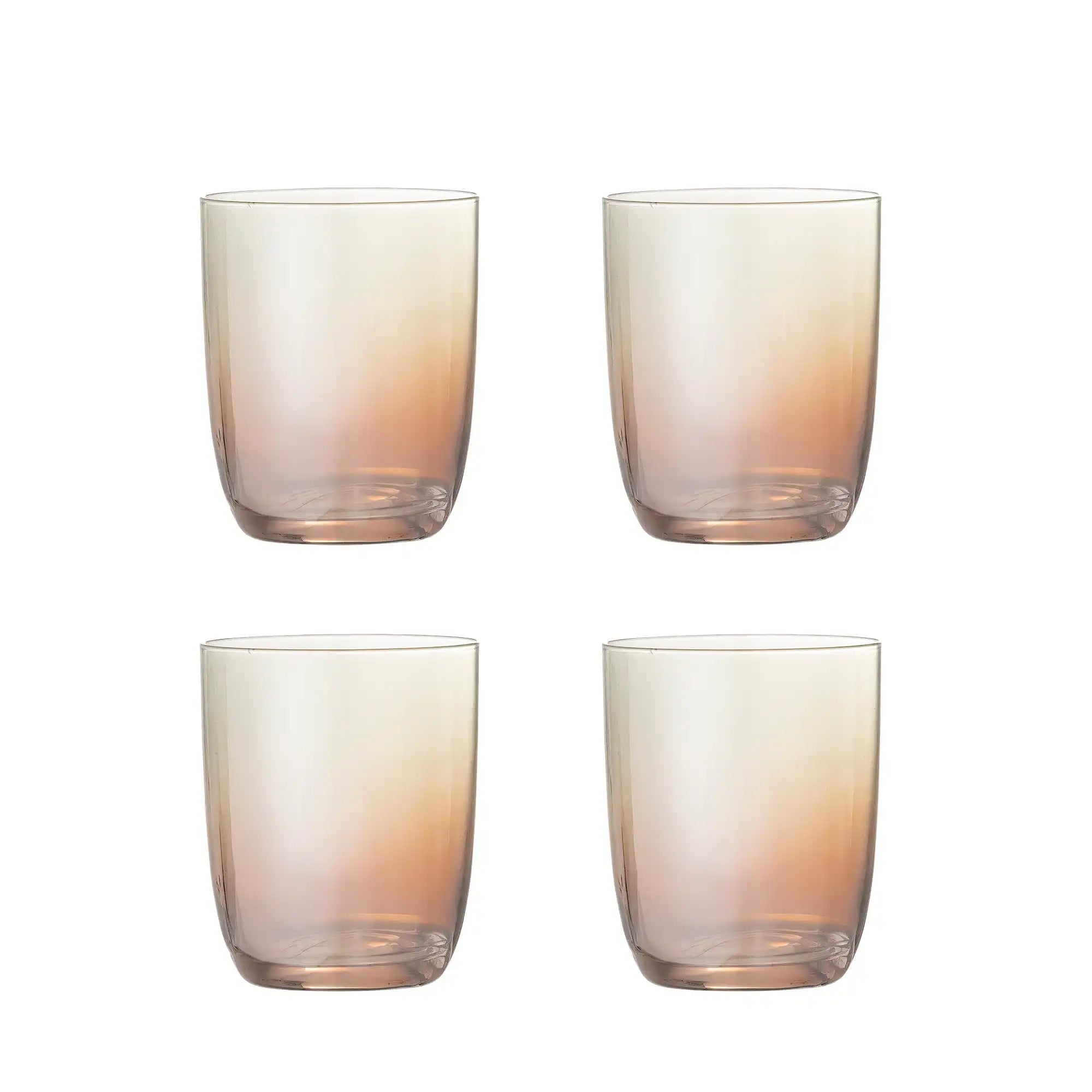 Details & materiaal: Deze set van vier glazen is vervaardigd uit hoogwaardig glas, afgewerkt met een elegante bronzen tint en een fijne parelmoerglans aan de rand. Dankzij hun tijdloze en eenvoudige ontwerp passen ze naadloos bij zowel moderne als klassieke serviezen, terwijl de diameter van 8 cm en de hoogte van 10 cm zorgen voor een prettige grip en gebruiksgemak.