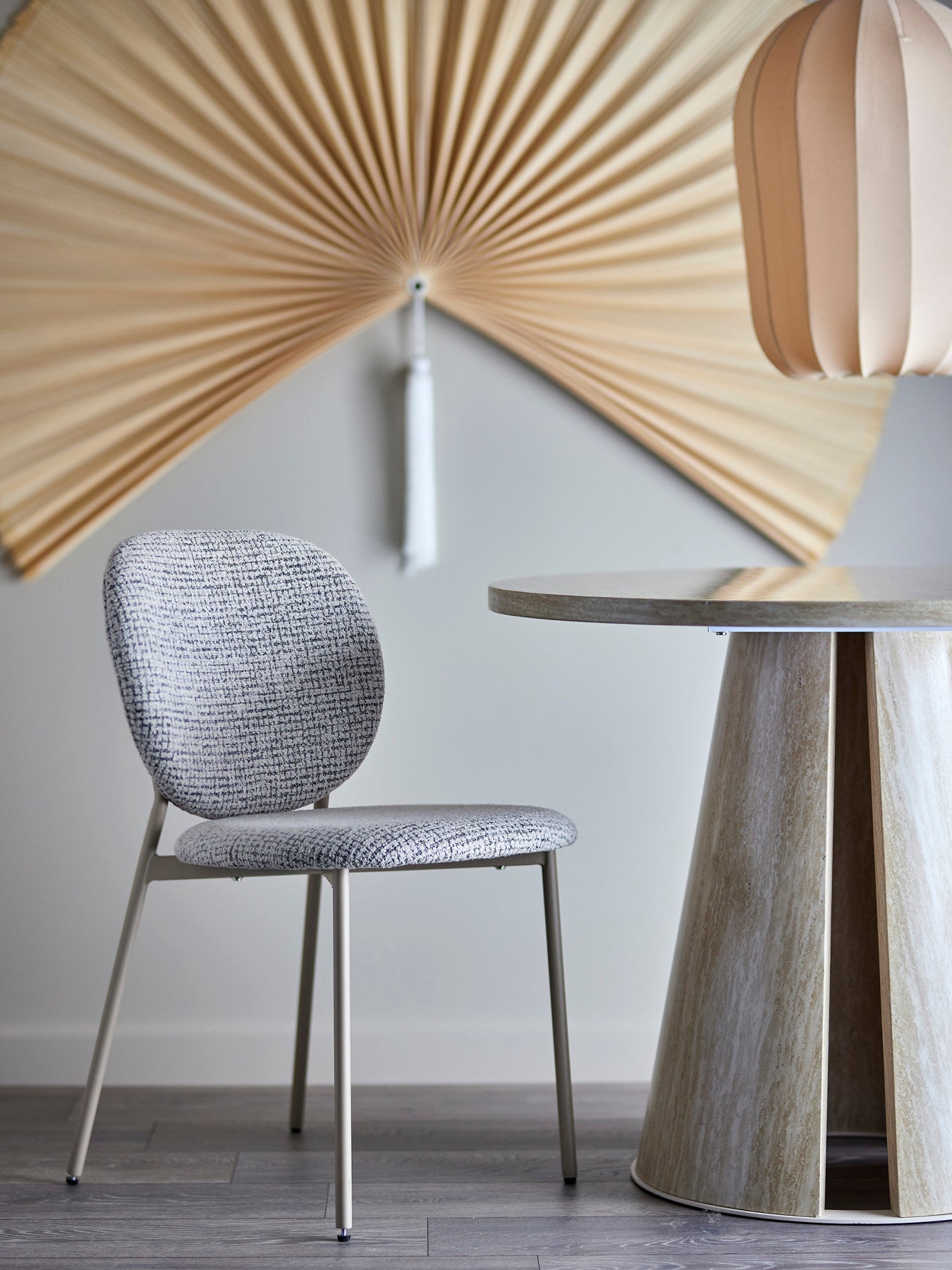 Waarom je de eetkamerstoel van Bloomingville wilt hebben: Je zoekt een stoel die rustig oogt, prettig zit en het dagelijks leven net wat makkelijker maakt. De Percey brengt precies dat: een ingetogen combinatie van grijs melange chenille en houttinten in naturel / beige, met een comfortabele, gewatteerde zitting en rugleuning. Het resultaat is een ontspannen plek aan tafel waar je moeiteloos langer blijft natafelen, zonder opsmuk en met aandacht voor kwaliteit. Vertrouwd, doordacht en met de Scandinavische nuchterheid waar je jaren plezier van hebt.