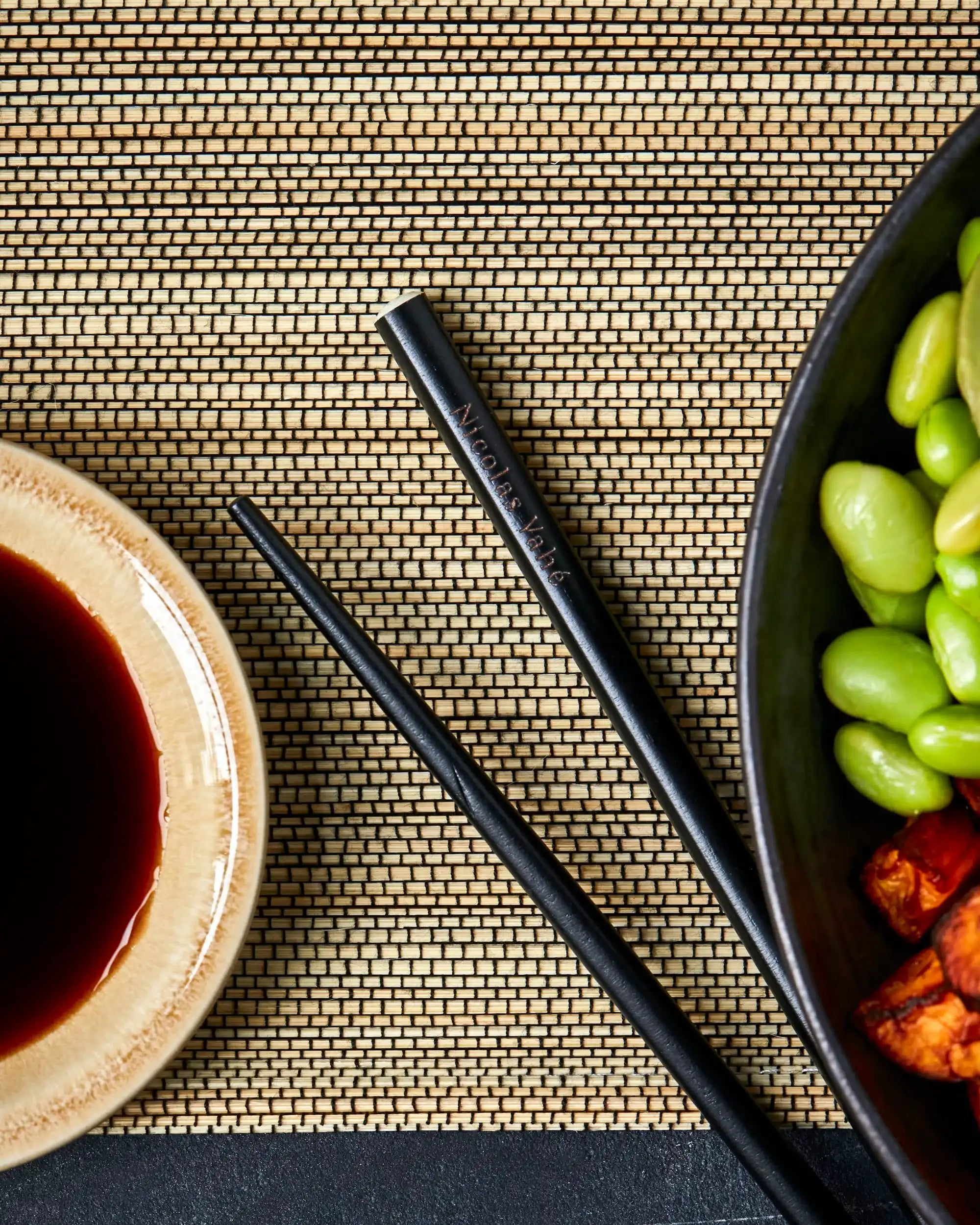 Leg de eetstokjes nonchalant op een linnen servet en combineer ze met aardewerk borden of kommen in aardetinten voor een serene, Japans geïnspireerde tafelsetting. Een klein detail met grote impact.
