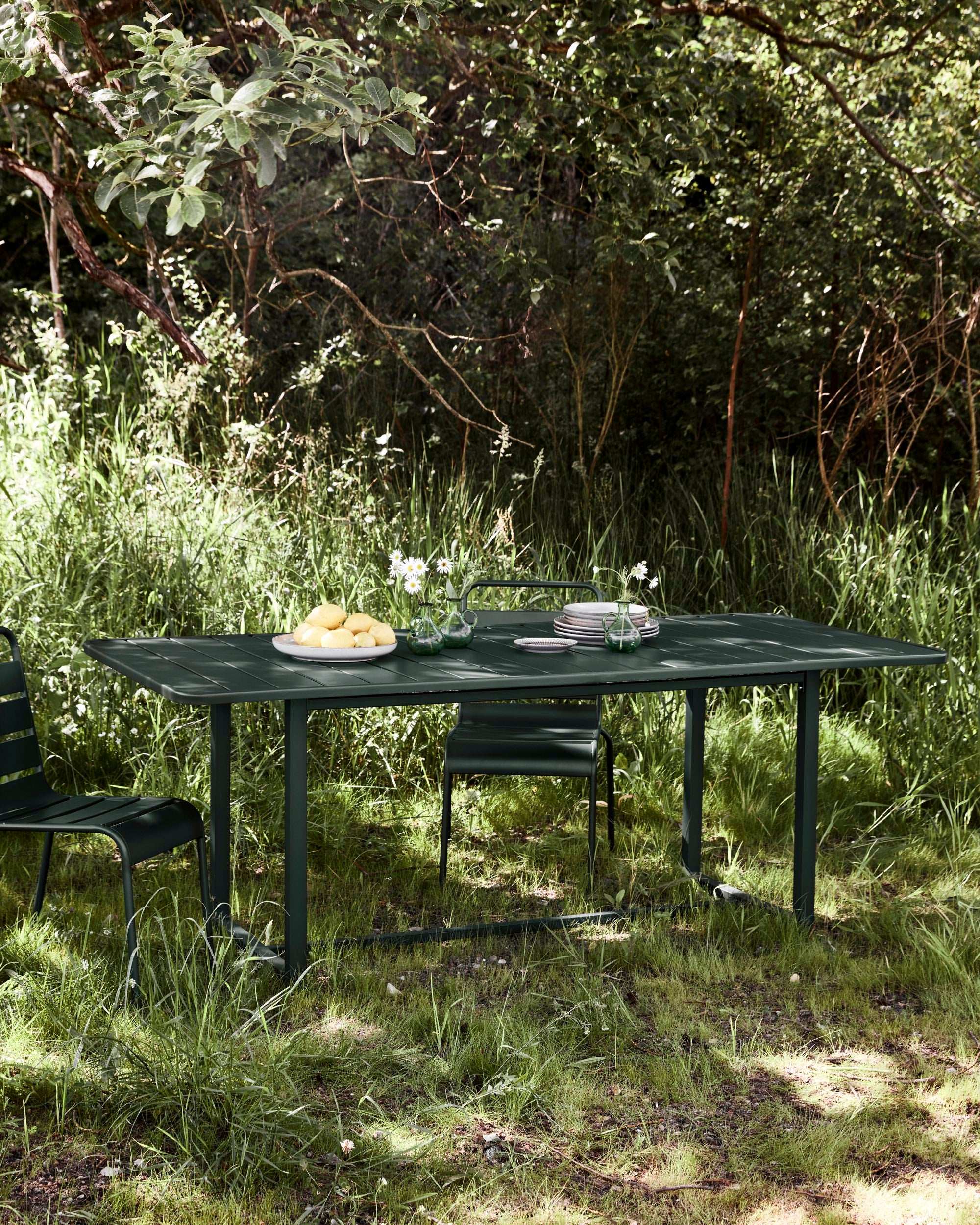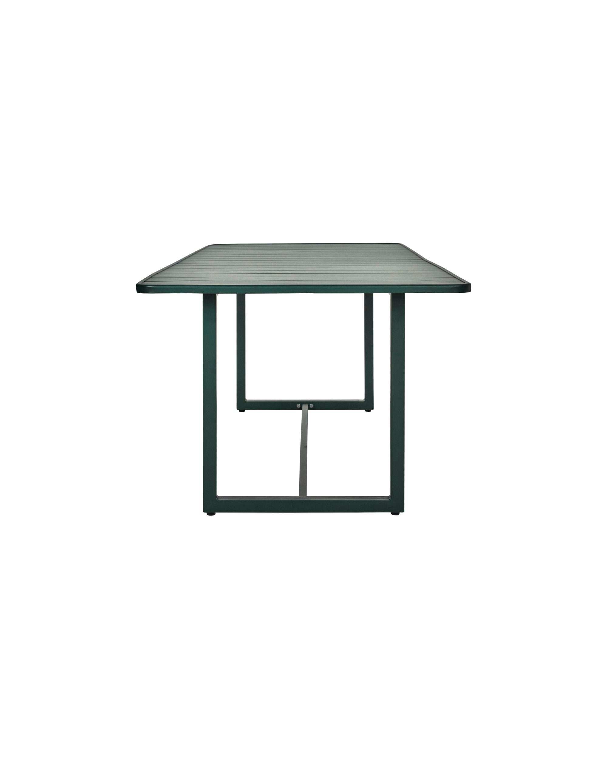 De Helo eettafel van House Doctor is ontworpen voor lange zomerdiners, gezellige brunches en ontspannen momenten in de tuin. Met zijn donkergroene matte poedercoating straalt deze tafel een moderne rust uit die perfect past in zowel een natuurlijke als een stedelijke buitenomgeving.