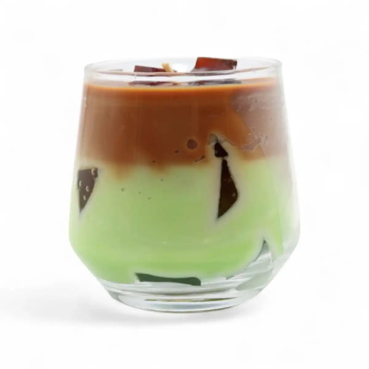 Zeg maar dag tegen standaard kaarsen, want deze Mansion geurkaars is allesbehalve gewoon. Met haar gelaagde kleuren van romig groen en karamelbruin en speelse ‘ijsblokjes’ van was lijkt ze zo uit een koffietentje te komen. Maar in plaats van een drankje krijg je een heerlijke geurbeleving: Coffee & Salted Caramel.