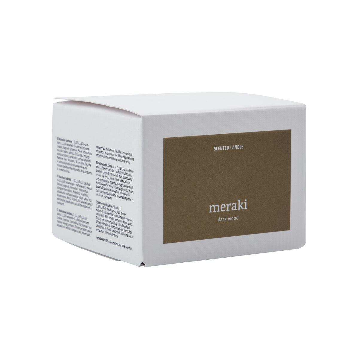 De geur Dark Wood van Meraki is een verfijnde compositie van rijke en warme aroma's. De topnoten van rum en zwarte peper brengen een pittige en verleidelijke opening, terwijl het hart van nootmuskaat, kruidnagel en amber zorgt voor een warme, kruidige dimensie. De basisnoten van sandelhout, cederhout en patchouli voegen diepte en een aardse warmte toe, waardoor een geur ontstaat die zowel rustgevend als uitnodigend is. Deze geurkaars is ideaal om elke ruimte te transformeren in een ontspannen oase.