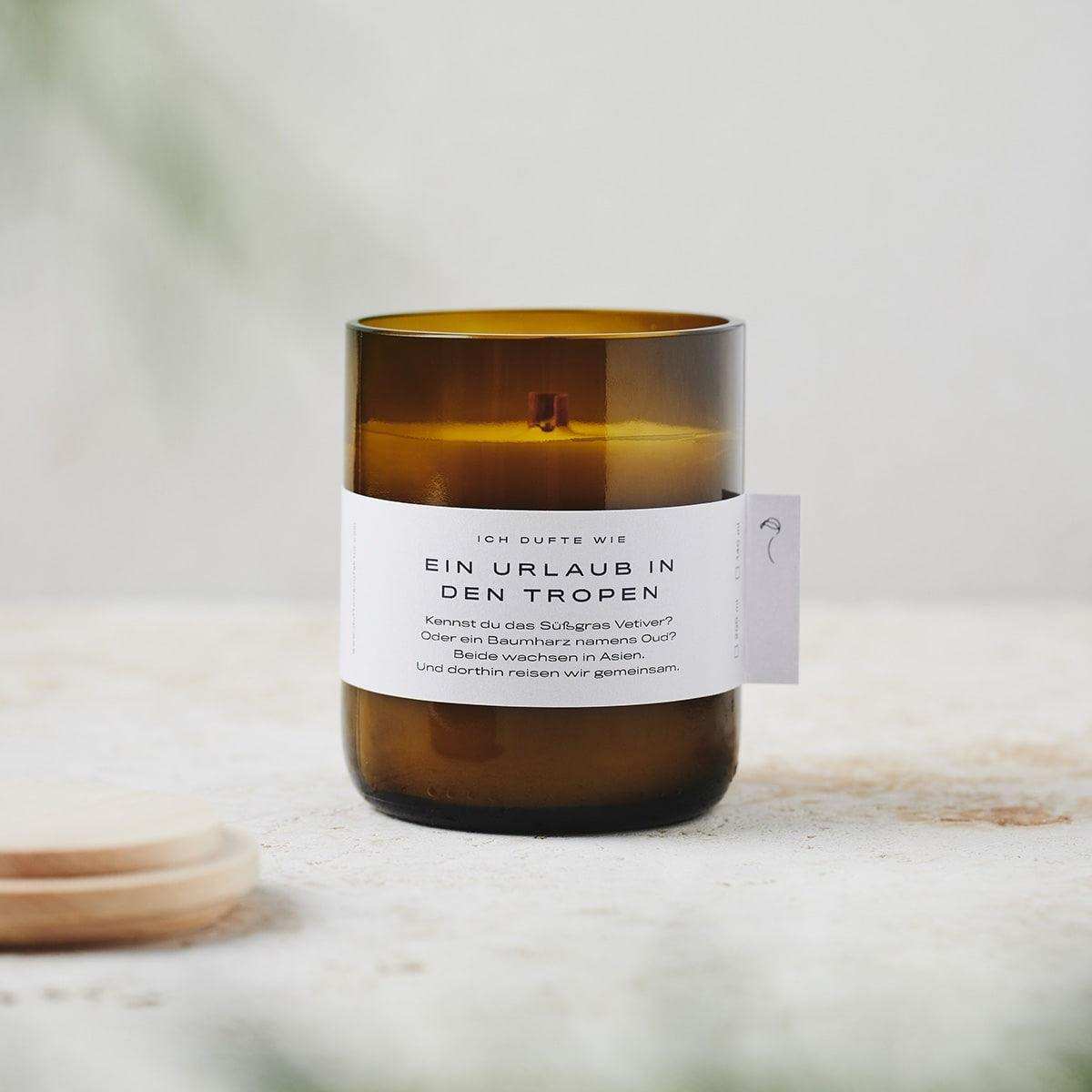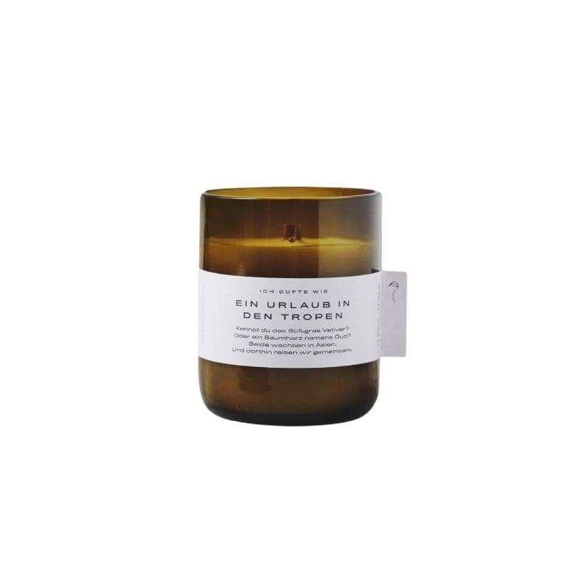 Stel je voor: een exotische ontsnapping naar een tropisch paradijs, elke keer dat je deze kaars aansteekt. De 'Vakantie in de Tropen' geurkaars van Dufte Manufaktur brengt de essentie van een Aziatische vakantie naar je woonkamer. De unieke geuren van zoet grasvetiver en het rijke boomsap Oud, beide kenmerkend voor de Aziatische flora, creëren een ervaring die je doet denken aan exotische bestemmingen en ontspannen dagen onder de zon.