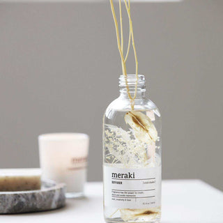 Maak kennis met de stijlvolle en heerlijk geurende geurstokjes van Meraki. Deze geurstokjes zijn niet alleen speciaal vanwege hun heerlijke geur, maar ook vanwege het stijlvolle ontwerp. Je ziet namelijk de ingrediënten nog zitten in het flesje, wat deze geurstokjes extra bijzonder maakt.