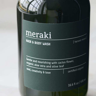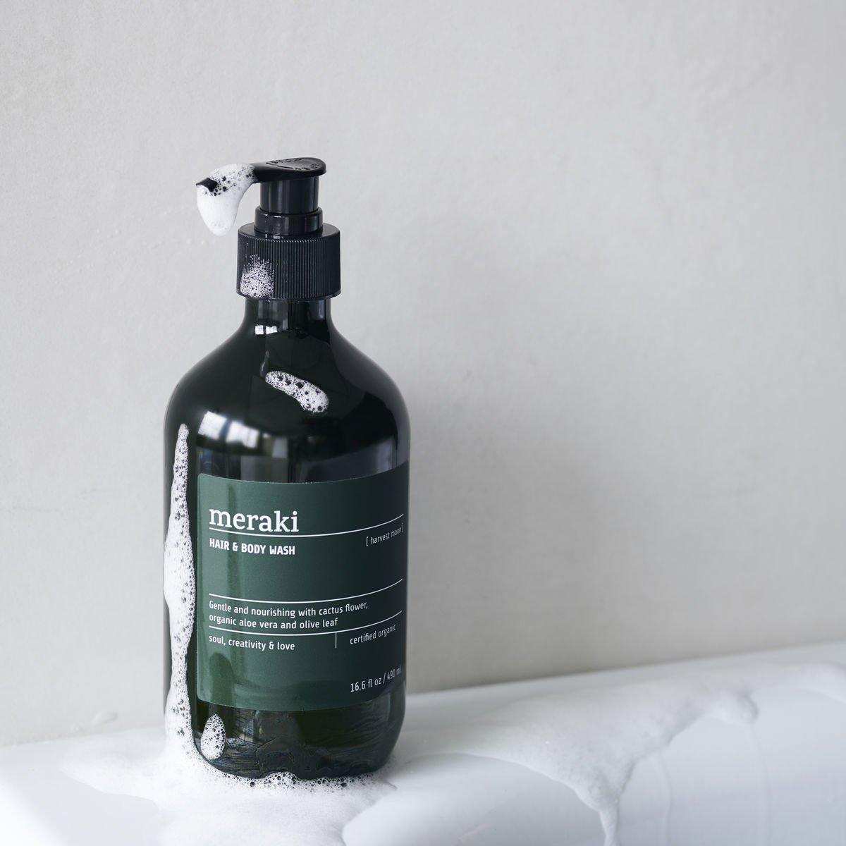 De haar- en lichaamzeep van Meraki is verkrijgbaar in een handige fles van 490 ml, zodat je genoeg hebt voor dagelijks gebruik en voor langdurige verzorging van zowel je haar als je huid.