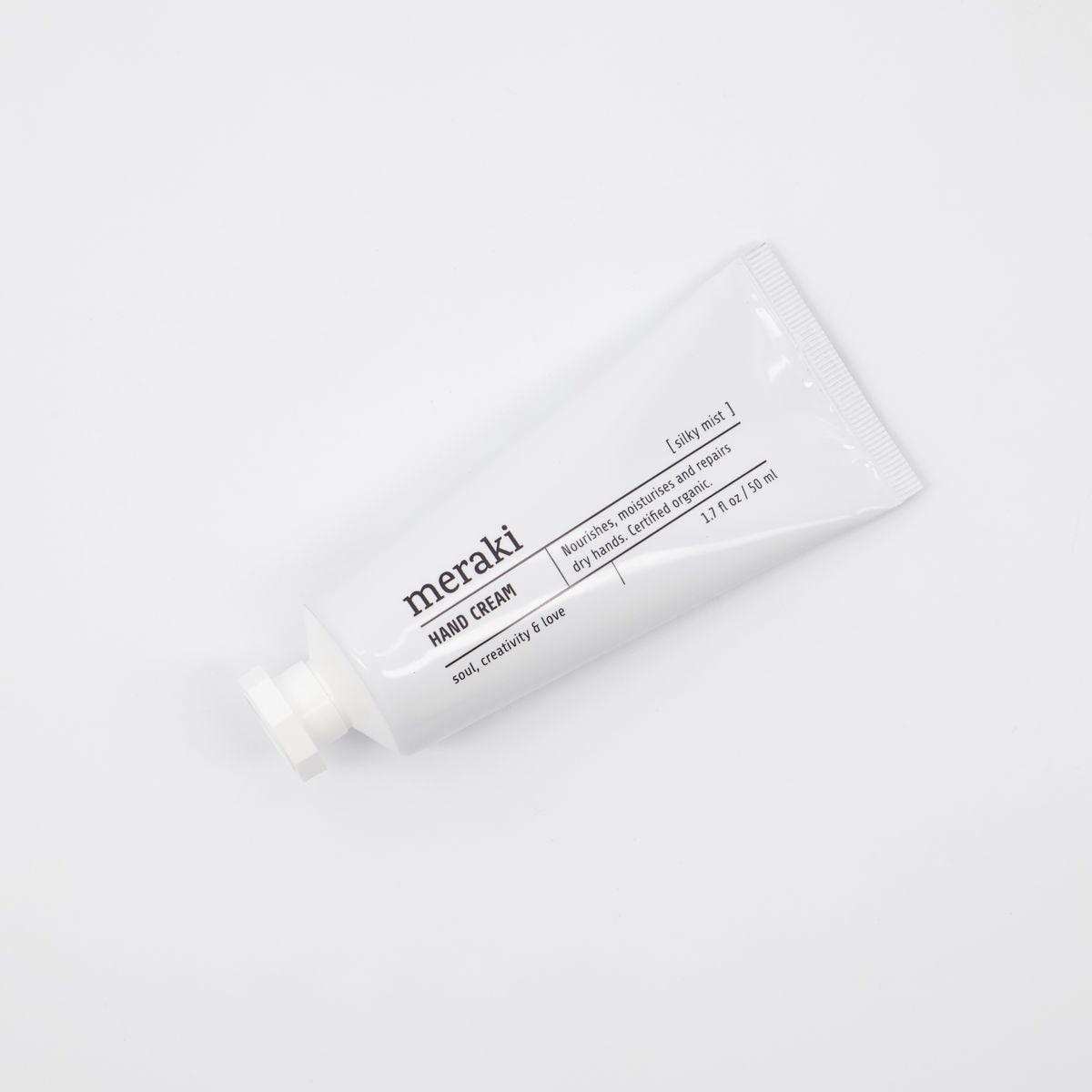 Met zijn natuurlijke ingrediënten en zachte geur is de Silky Mist handcrème niet alleen goed voor je handen, maar ook een heerlijk verwenmomentje voor jezelf. Verzorg je handen op een natuurlijke en milieubewuste manier met deze gecertificeerd biologische handcrème van Meraki.