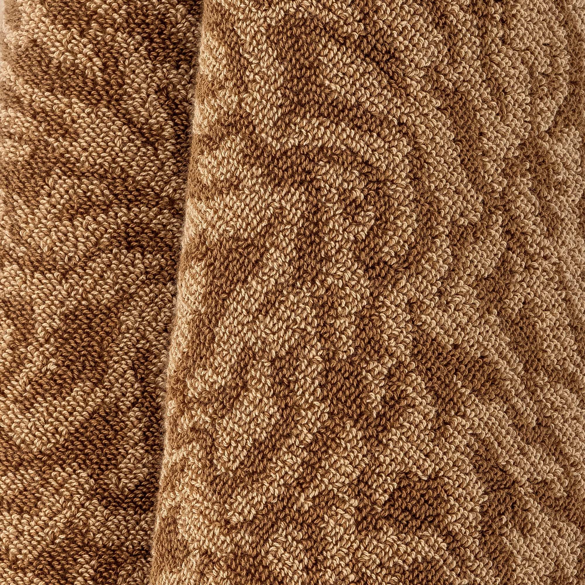Details & materiaal: Deze ruime badhanddoek van 70 x 140 cm is gemaakt van 100% katoen en voelt heerlijk zacht aan op de huid. Het geweven motief in warmbruin geeft een natuurlijke, Scandinavische uitstraling en zorgt ervoor dat de handdoek zowel mooi als absorberend is.