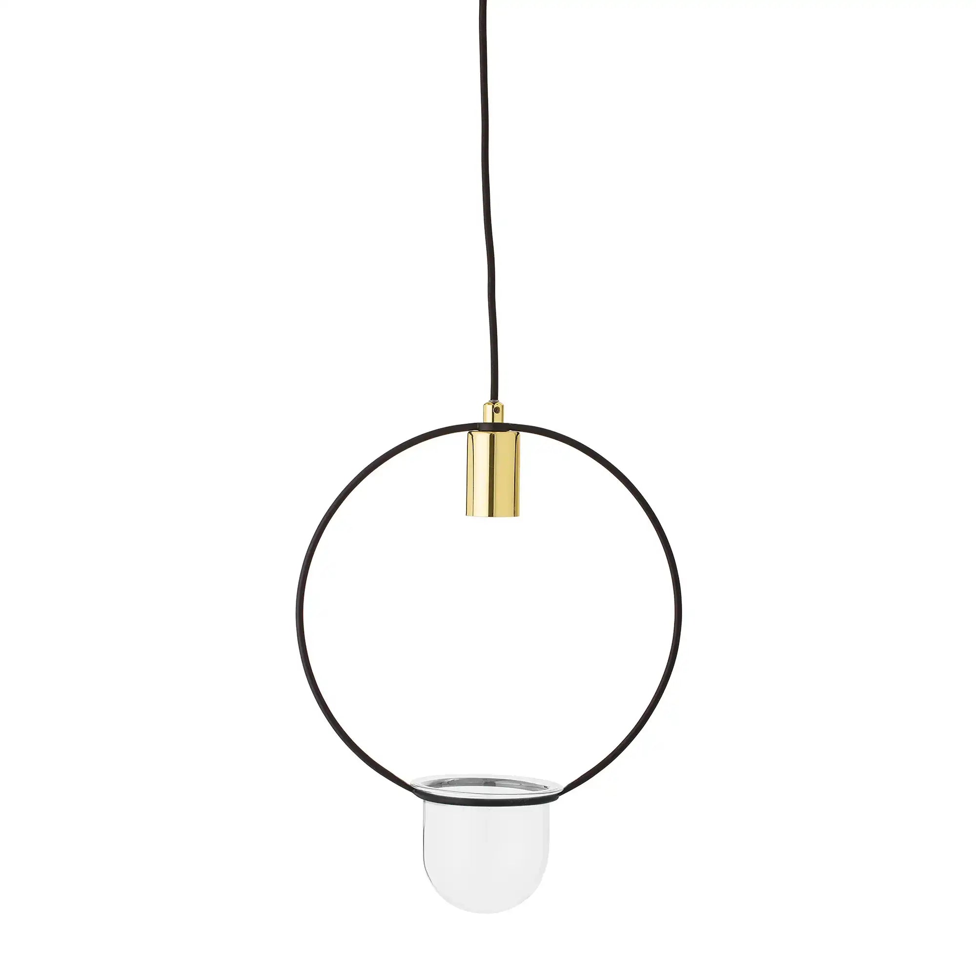 Details & materiaal: De Caralina hanglamp van Bloomingville is vervaardigd uit stevig metaal met een stralende goudafwerking. Met een hoogte van 38 cm en een royale diameter van 30 cm komt deze lamp prachtig tot zijn recht boven een eettafel, in de hal of als eyecatcher in de woonkamer. Het minimalistische ontwerp combineert functionaliteit met verfijning, en het geïntegreerde vaasje geeft een eigentijdse, speelse twist.